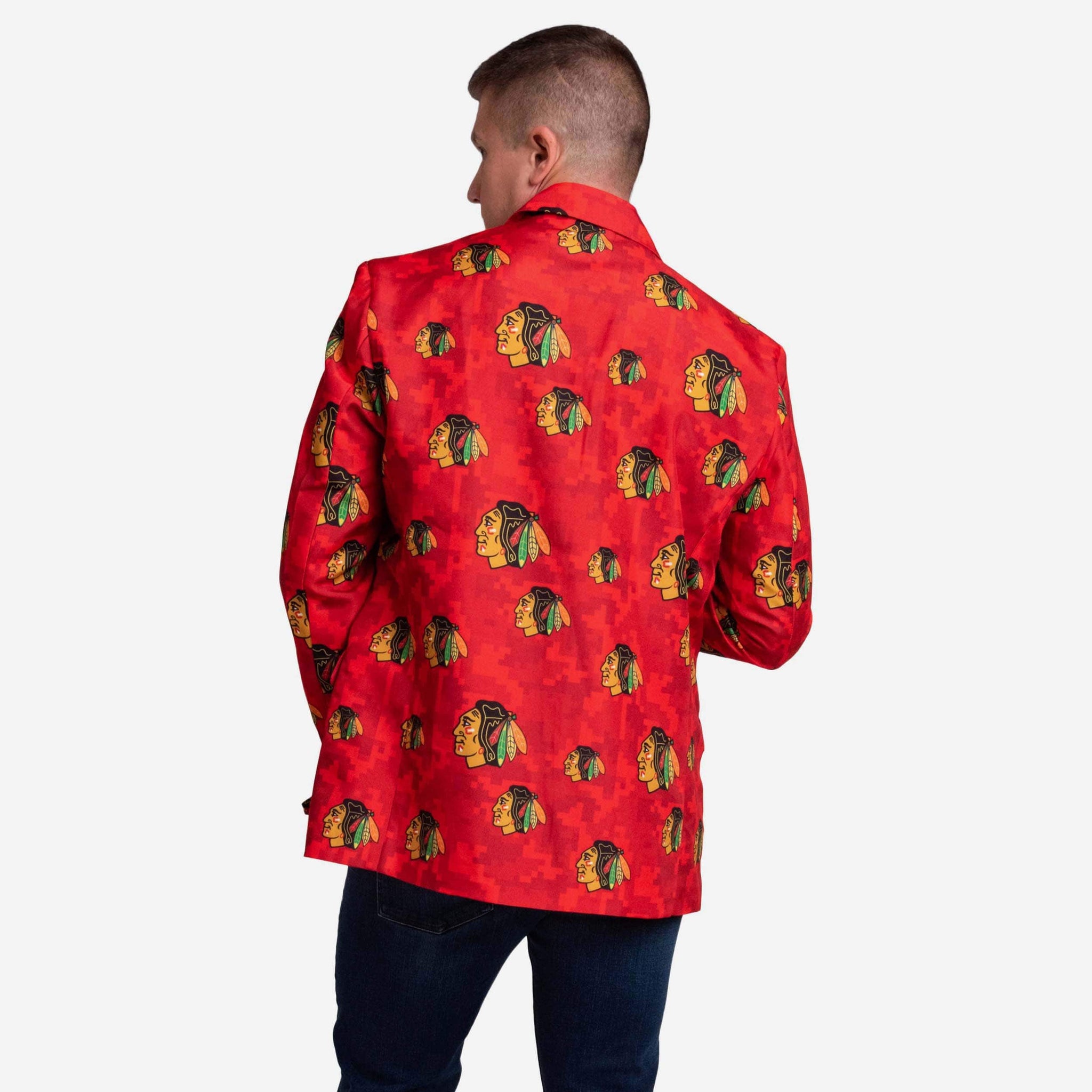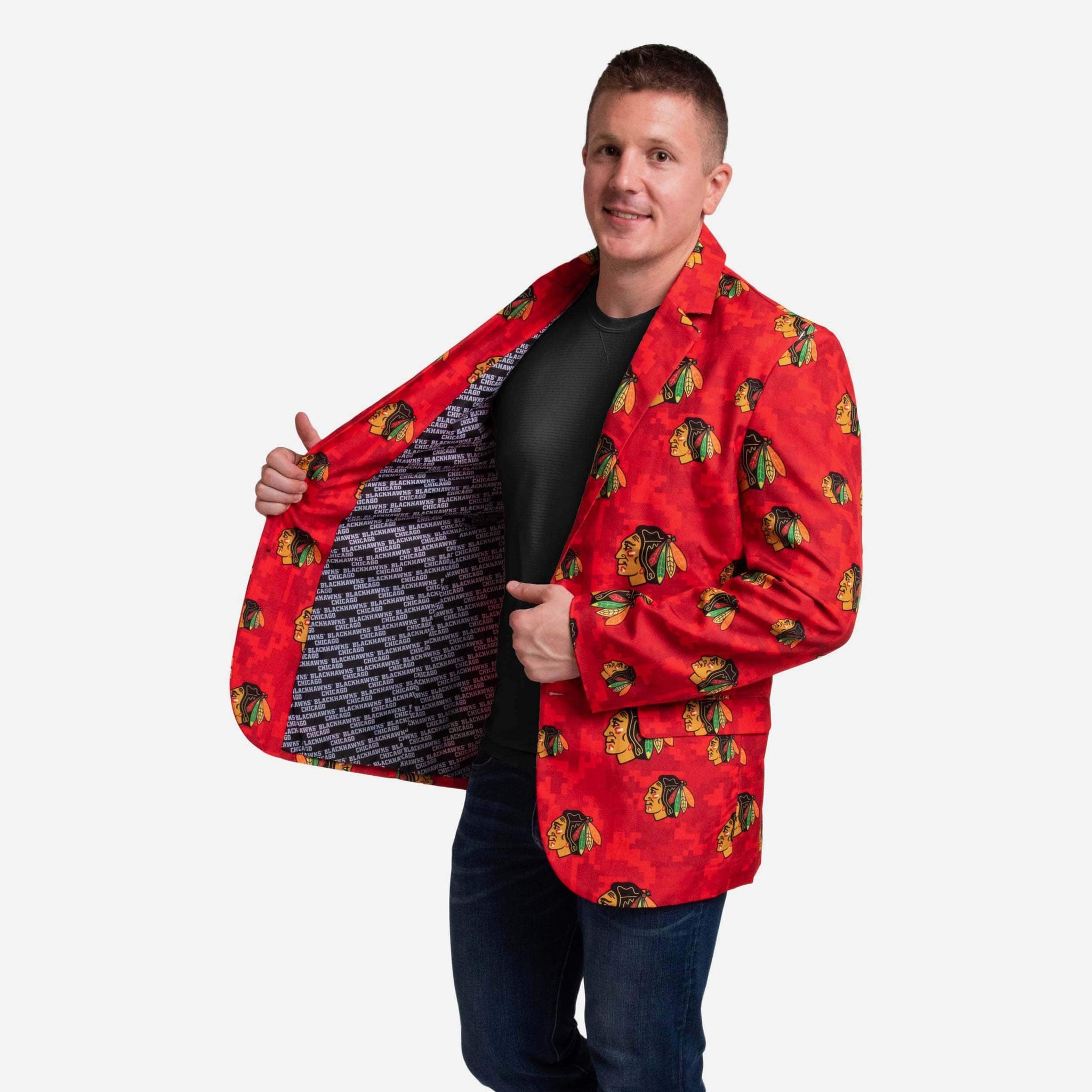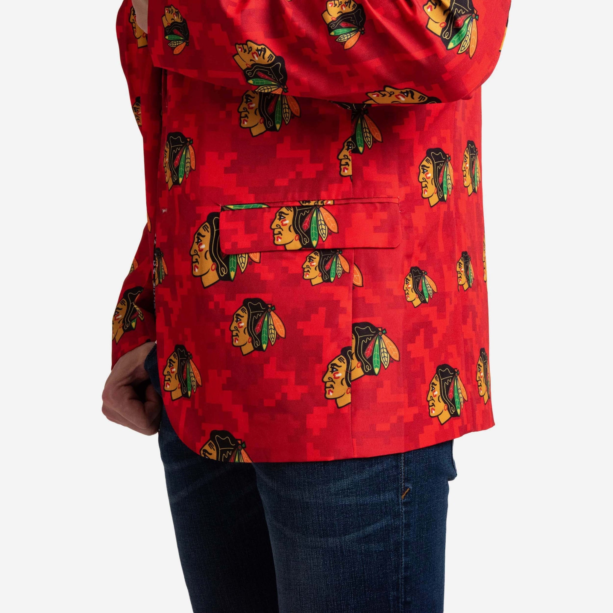 This Chicago Blackhawks Digital Camo Suit Jacket may feature a team-colored camouflage design, but we promise it won't hide your legendary fandom. Nothing can hide that kind of bold team spirit.