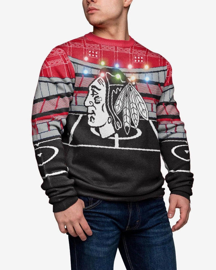 You bring the noise at the stadium. Do the same at your holiday party. You can hook your phone or computer up to this Chicago Blackhawks Stadium Bluetooth Sweater and rock on. This musical sweater even lights up, so you know that party is going to be lit - both literally and figuratively.