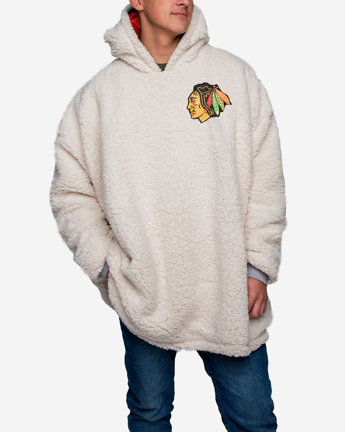 Choosing between showing off your team spirit, looking good, and enjoying some elite relaxation is a tough decision. Borderline impossible. Good news. You don't have to choose. Because you can enjoy that triple threat of fan awesome when you rock this Chicago Blackhawks Reversible Big Logo Hoodeez.