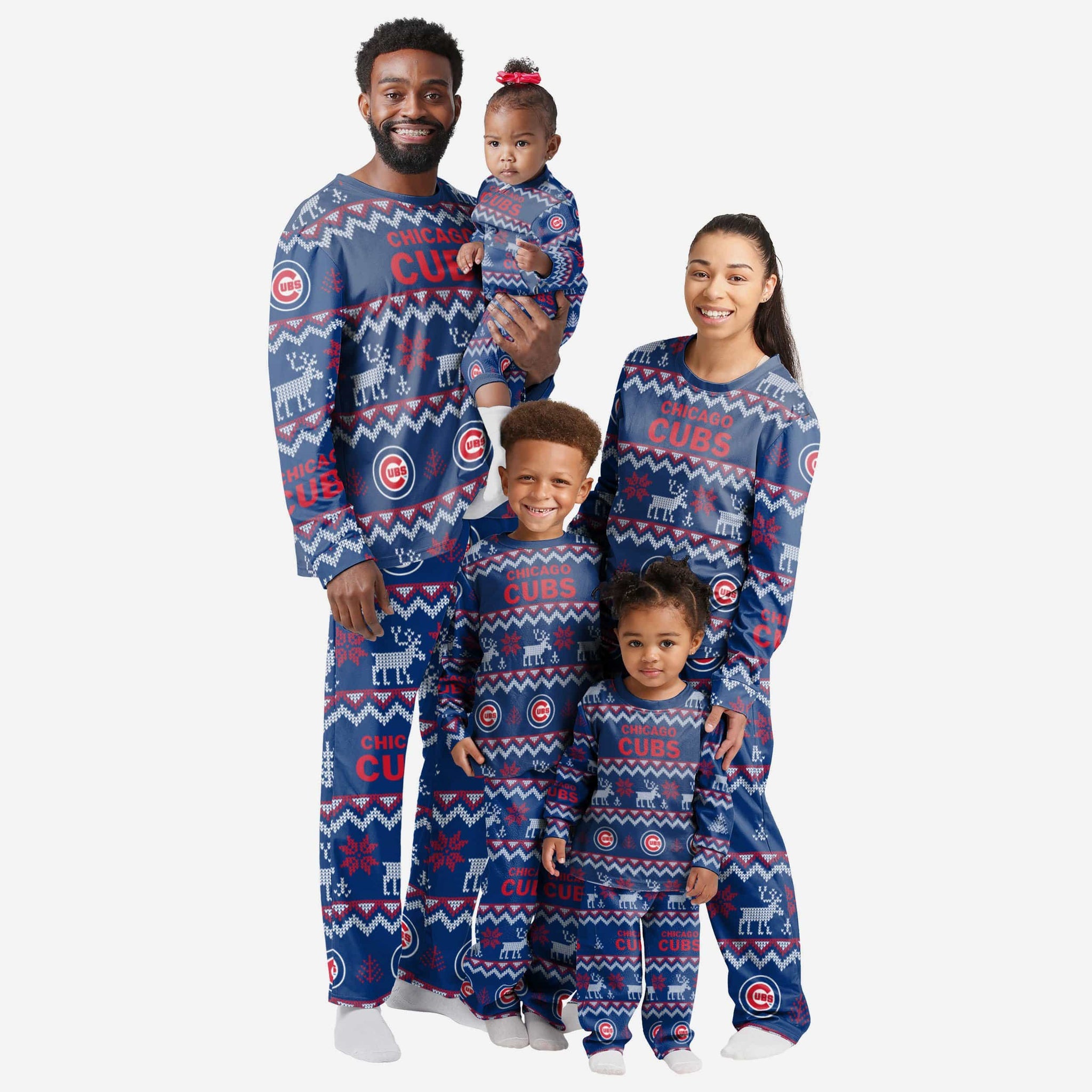 Get your young fan started early this holiday season in these Chicago Cubs Infant Ugly Pattern Family Holiday Pajamas! Your baby will absolutely love these matching Christmas pajamas! Make sure your infant enjoys sweet dreams filled with holiday joy by having them sleep in infant pajamas. Don’t forget to take your holiday photo with the whole family wearing matching Christmas pajamas!