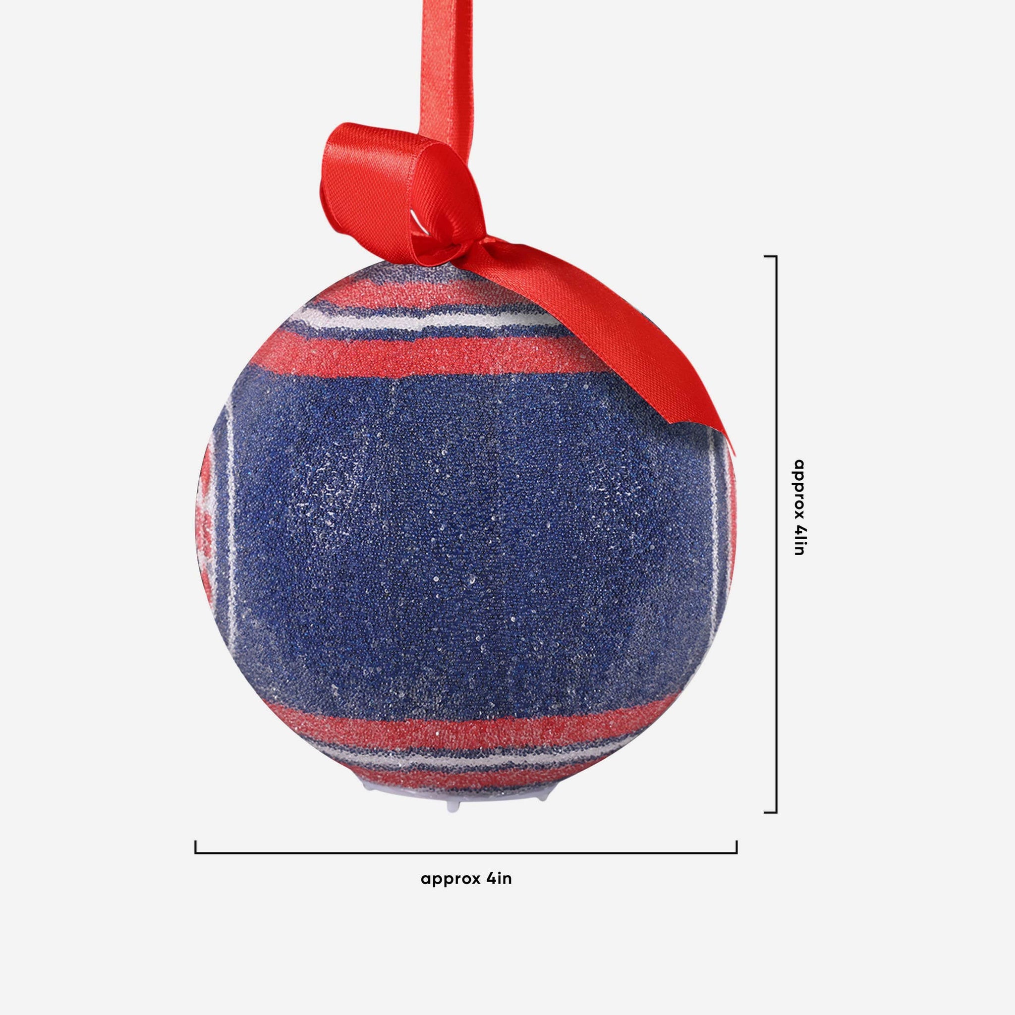 • Team-colored stripe accents on top and bottom of ornament to make your tree look extra awesome