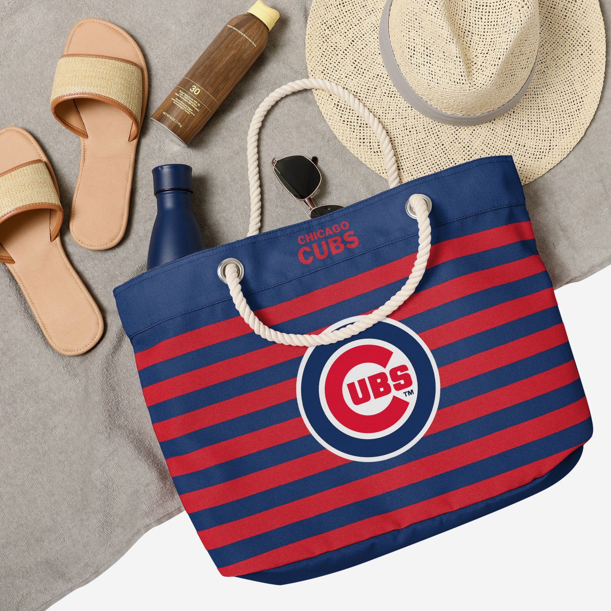 You're a real fan. You've earned your stripes. Now you can show them off AND carry the team with this Chicago Cubs Nautical Stripe Tote.