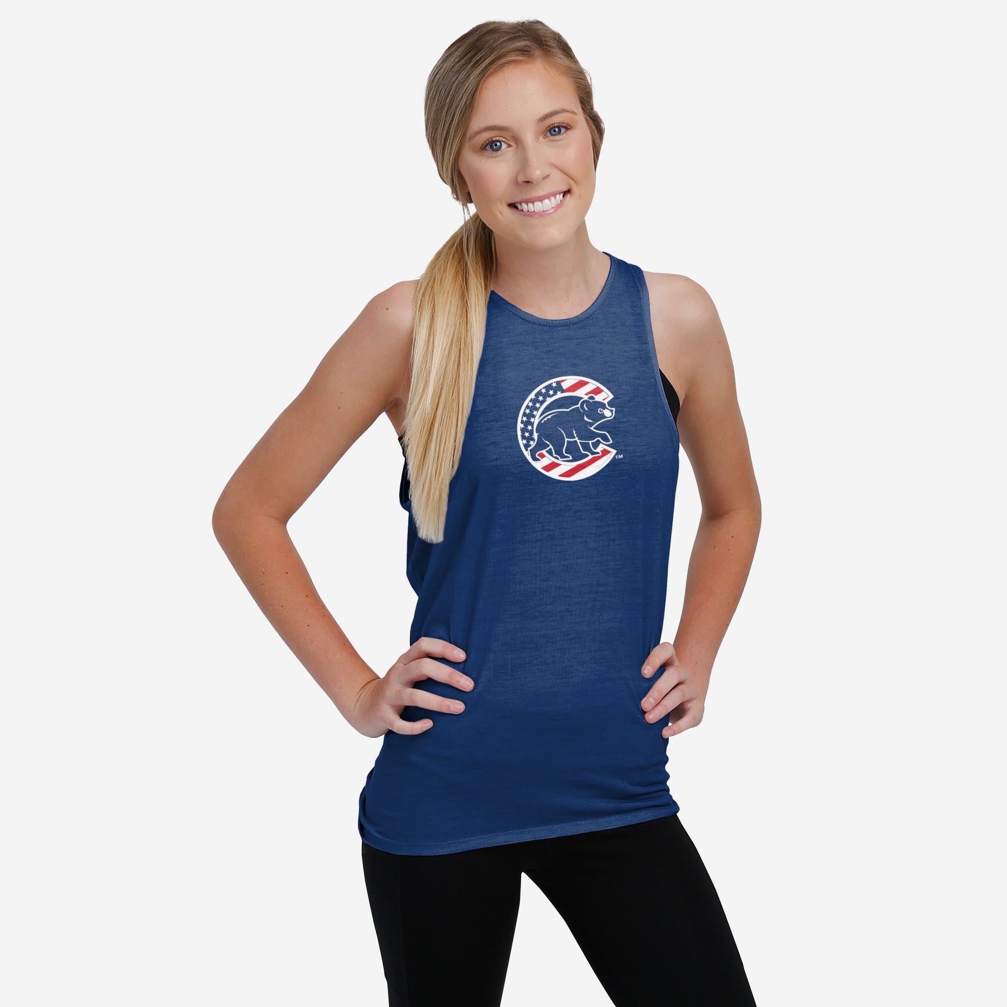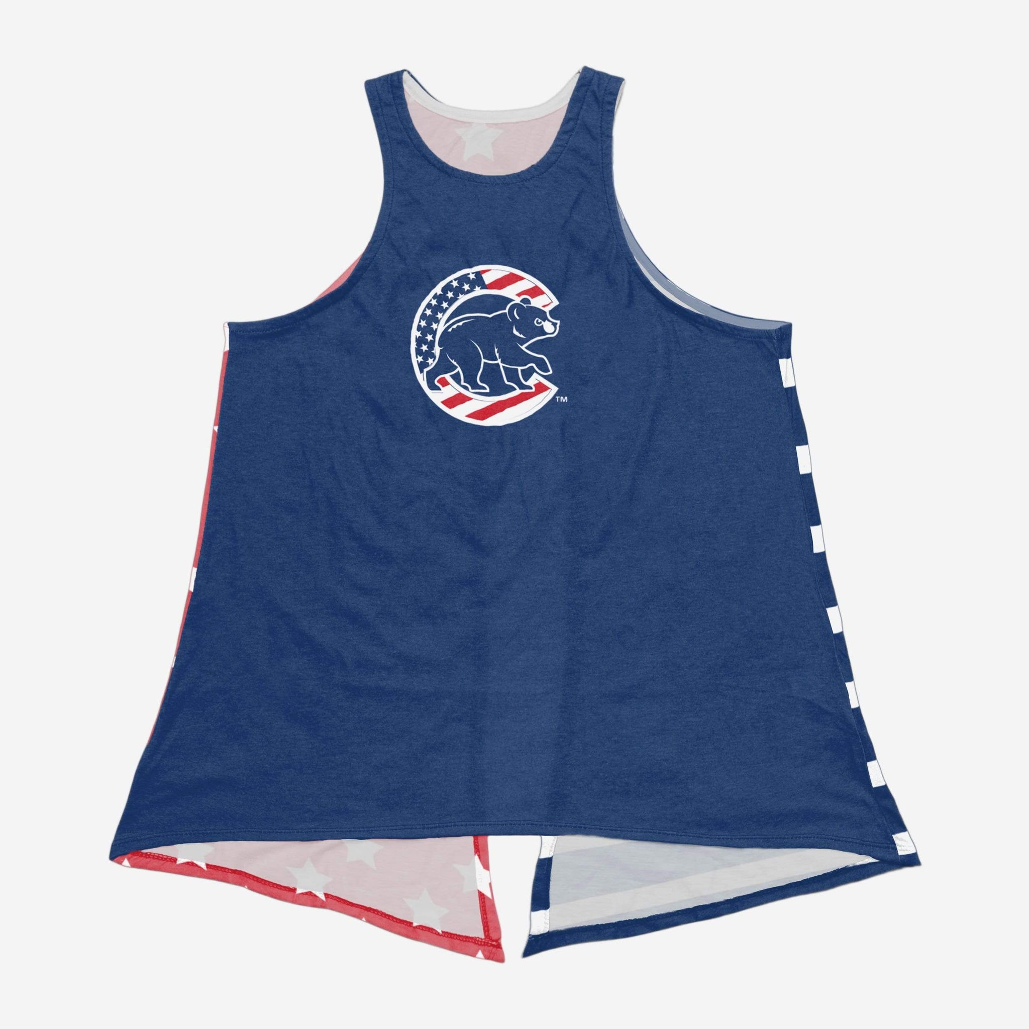 What this Chicago Cubs Women's Americana Tie Back Sleeveless Top lacks in sleeves, it more than makes up for in patriotic team pride!