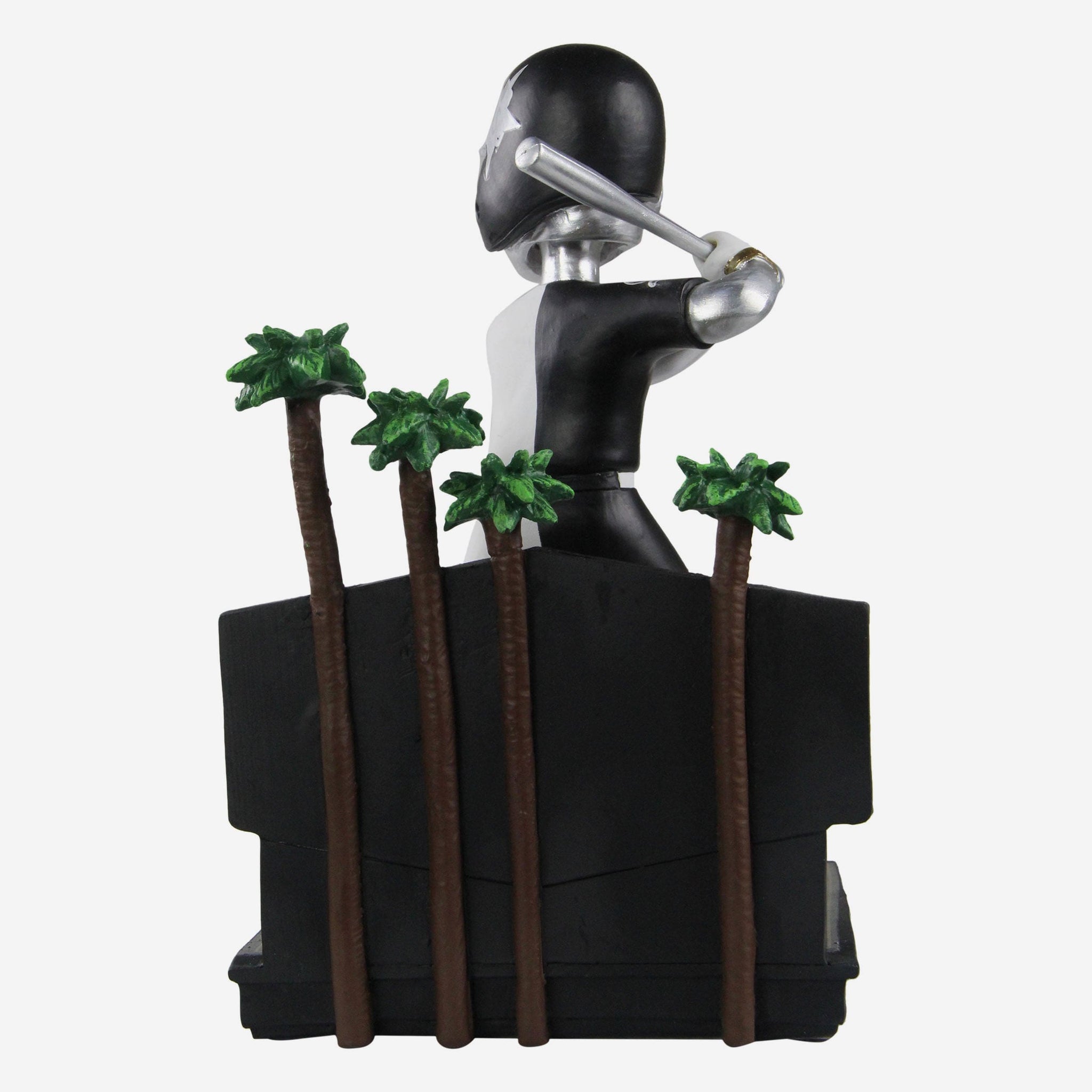 • Portrays figure wearing split-team-colored uniform in a batting pose, ready to dazzle the crowd