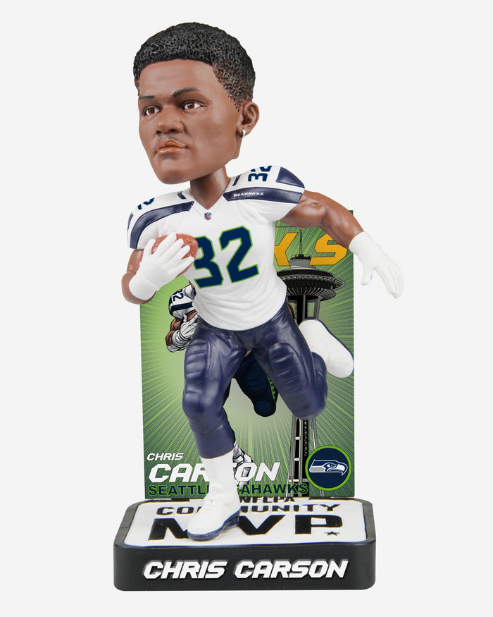 Chris Carson knows how to contribute on and off the field. Celebrate Carson's dedication to giving back to his community with this Chris Carson 2018 NFLPA Community MVP Award Bobblehead.