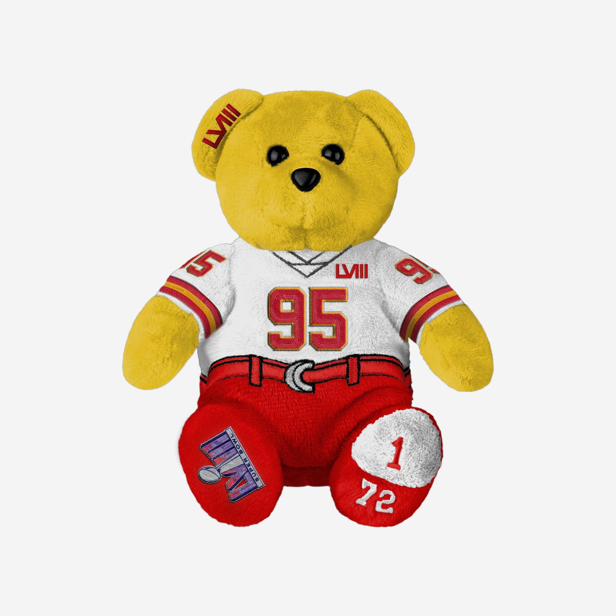 A limited-edition collectible you can’t *bear* to miss out on! Take things from the gridiron to your fancave with this Chris Jones Kansas City Chiefs Super Bowl LVIII White Uniform Team Beans Embroidered Player Bear. Only 72 made!