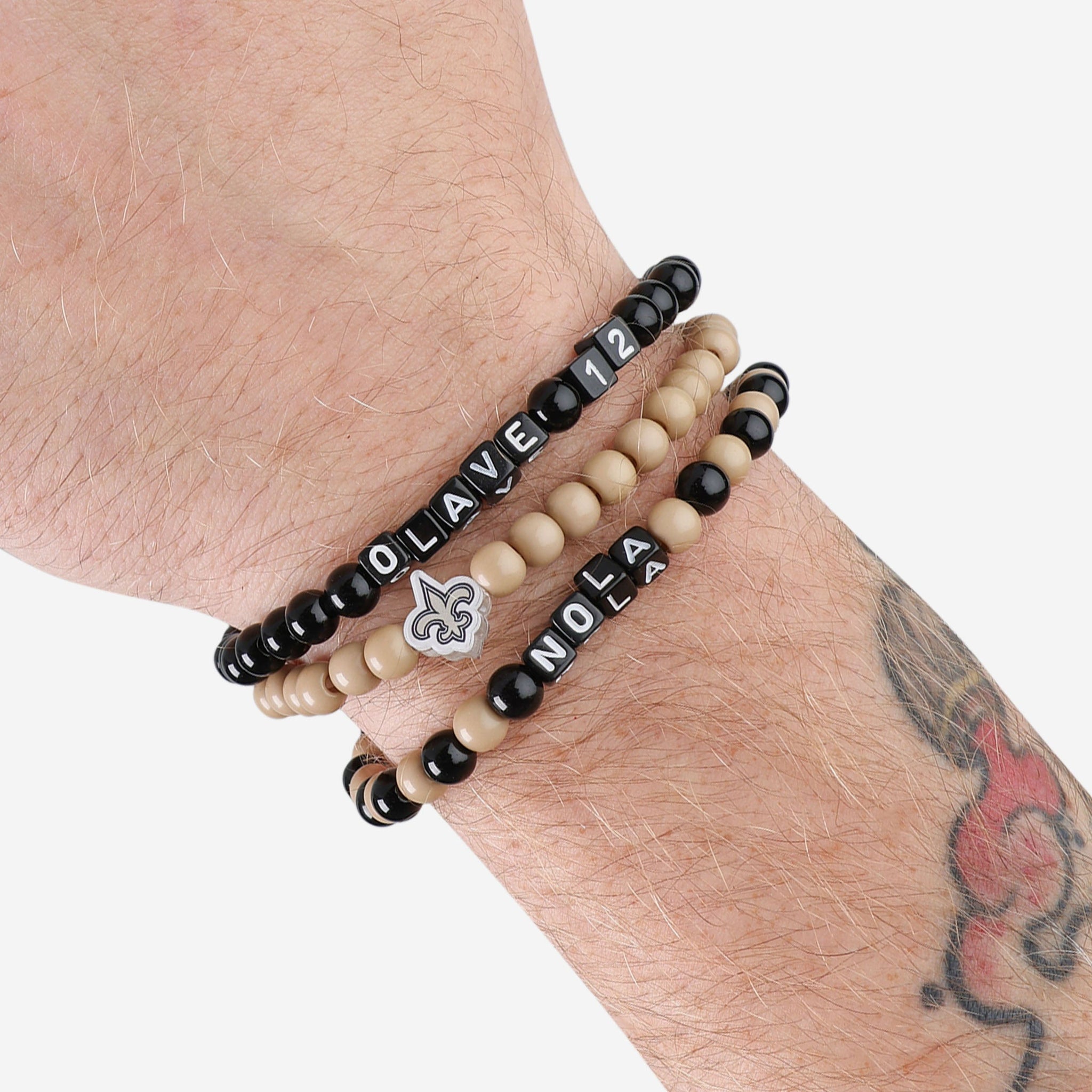 A whole new way to rep the team in style is here. Step up your fan fashion sense with this Derek Carr & Chris Olave New Orleans Saints 3 Pack Player Beaded Friendship Bracelet. These matching friendship bracelets have an all-over team-colored design and team logo displays, which makes them the perfect way to show your support for the New Orleans Saints on gamedays and every day in between.