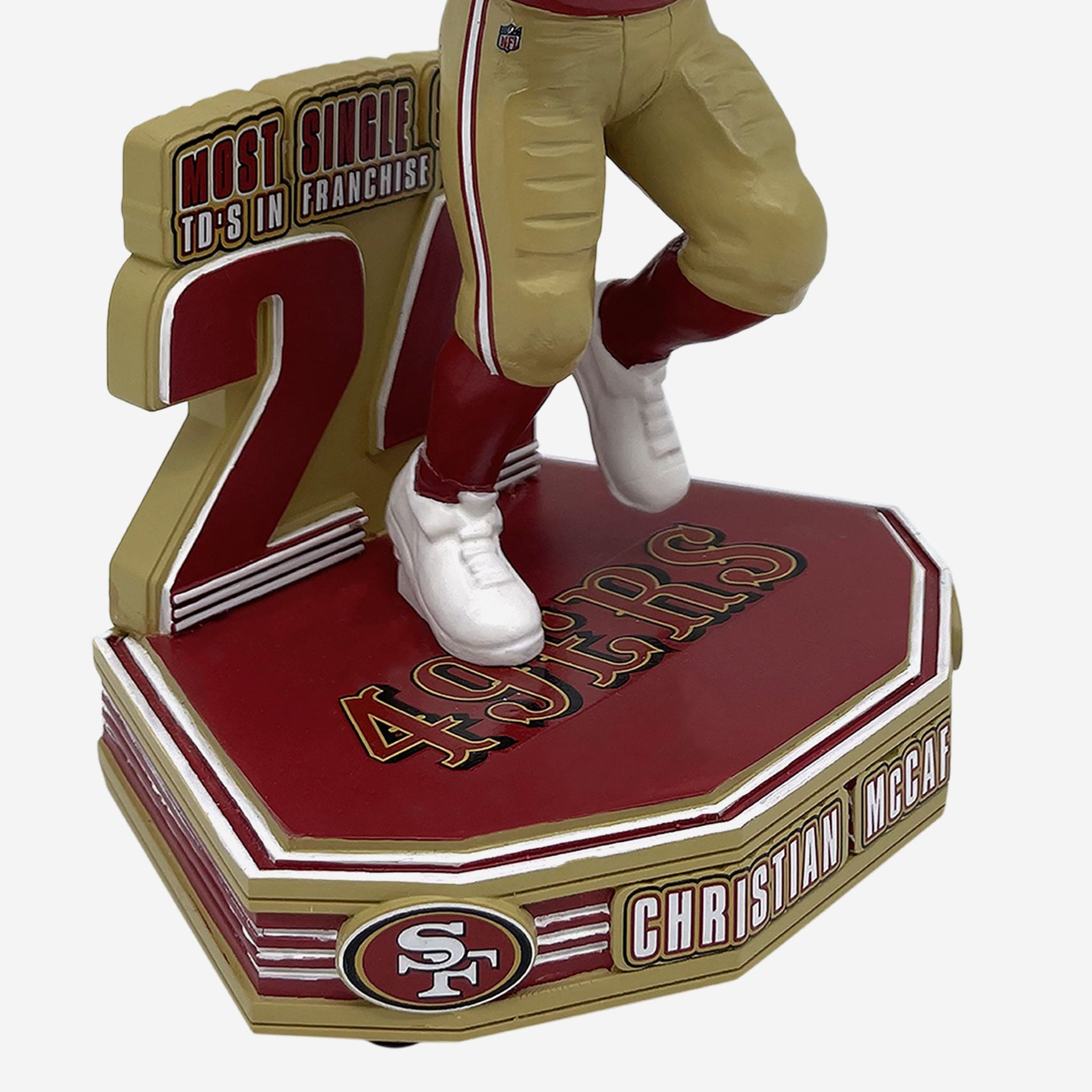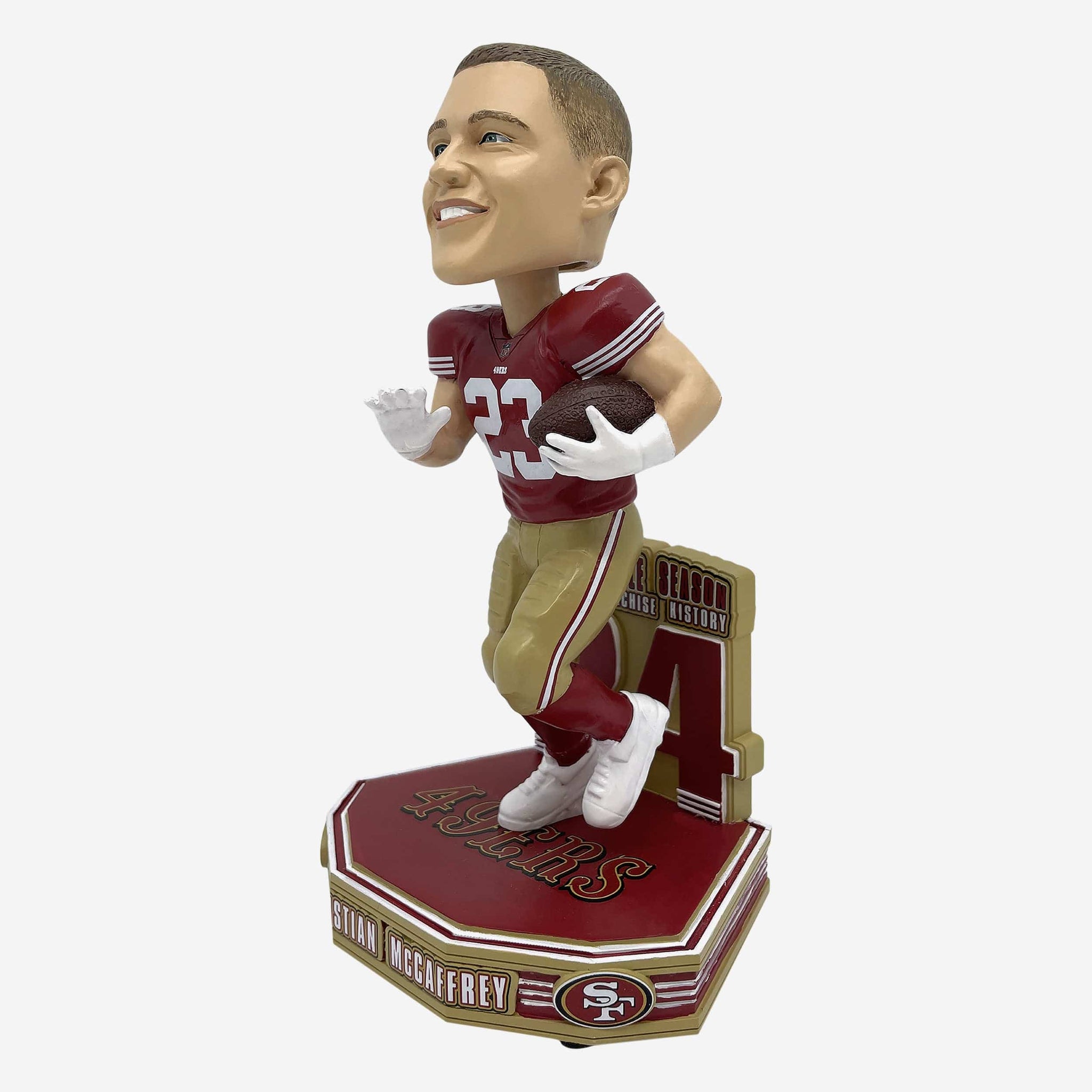 Run CMC re-wrote the record books by the Bay! Leave your mark in the single-season touchdown column with the Christian McCaffrey San Francisco 49ers Franchise Single Season Touchdown Record Bobblehead.