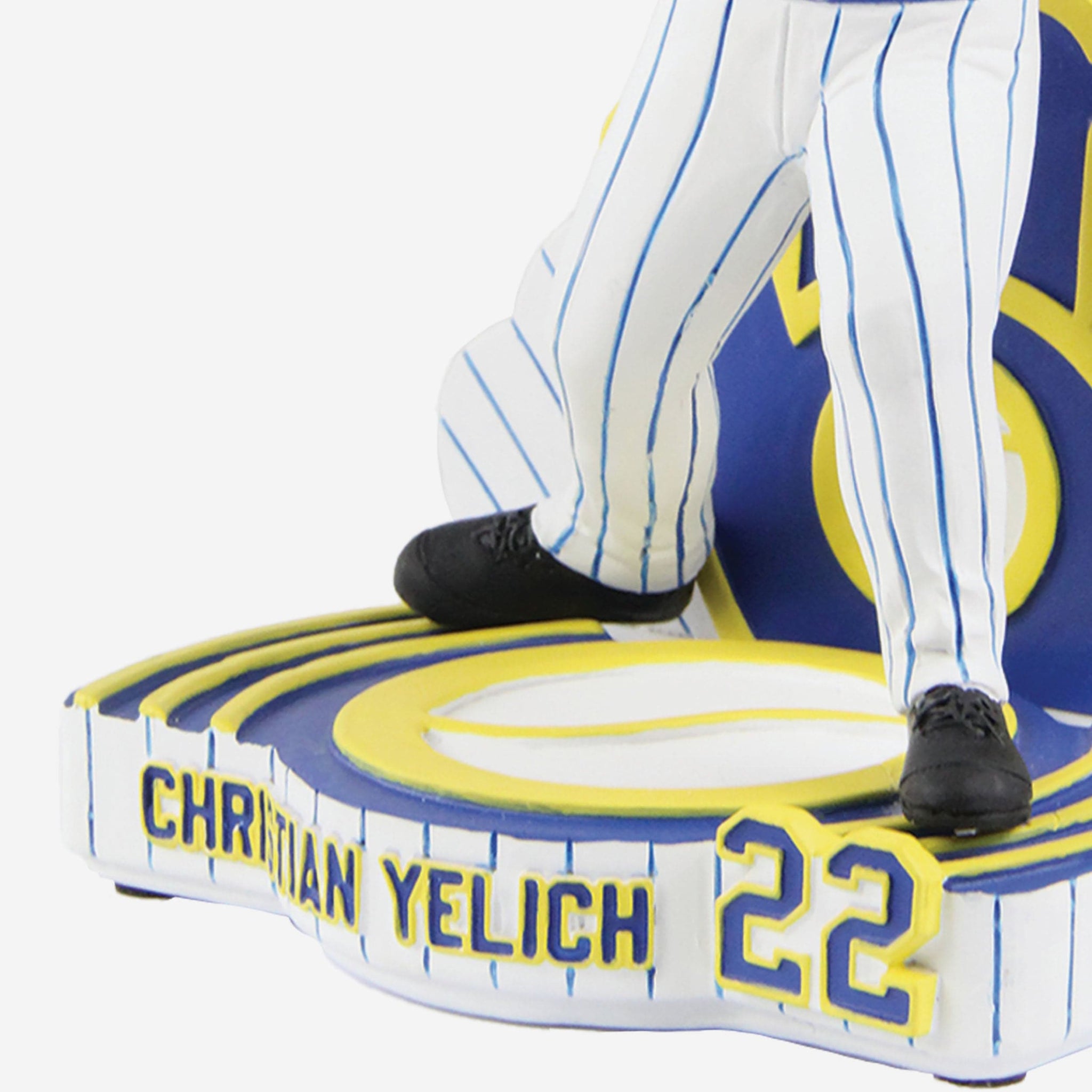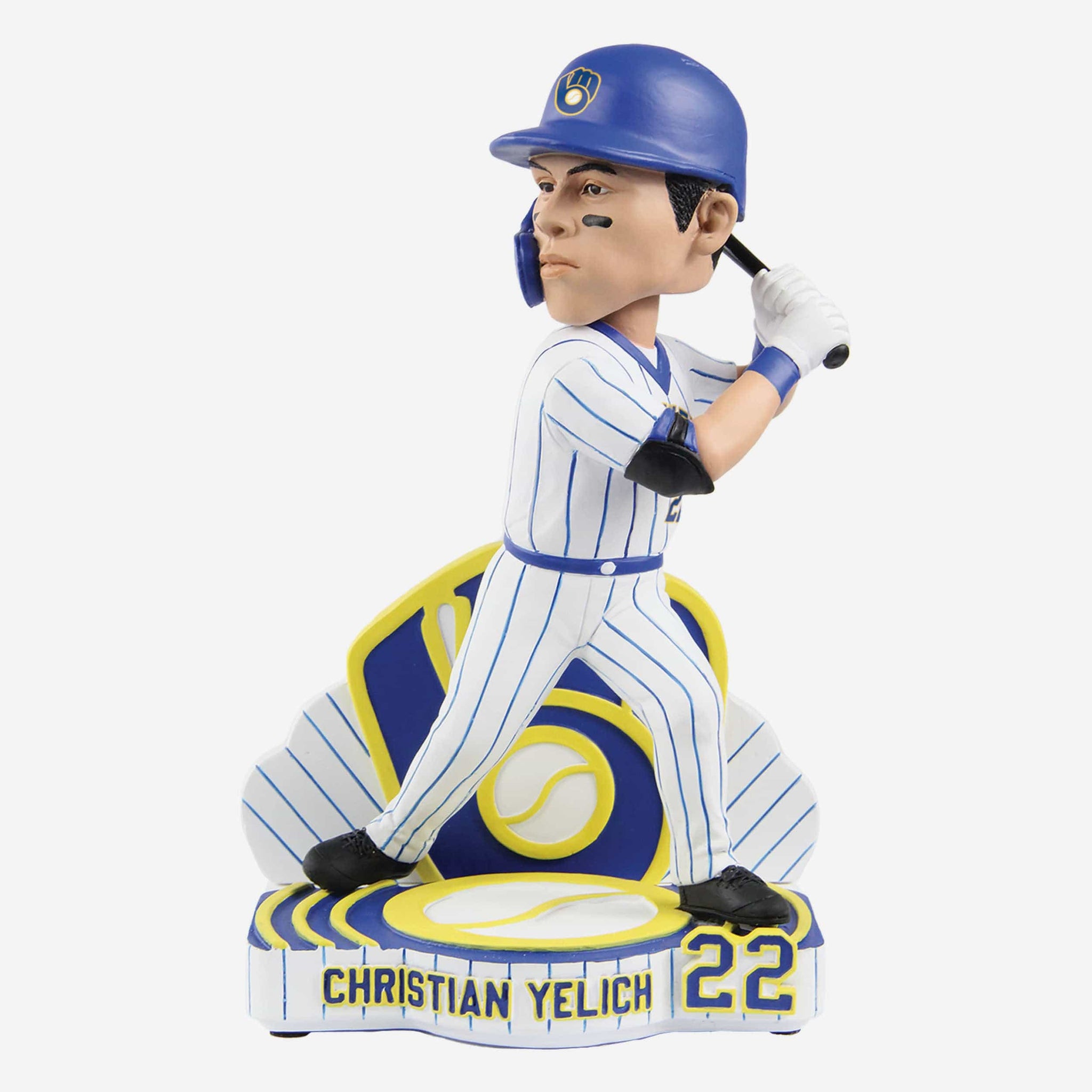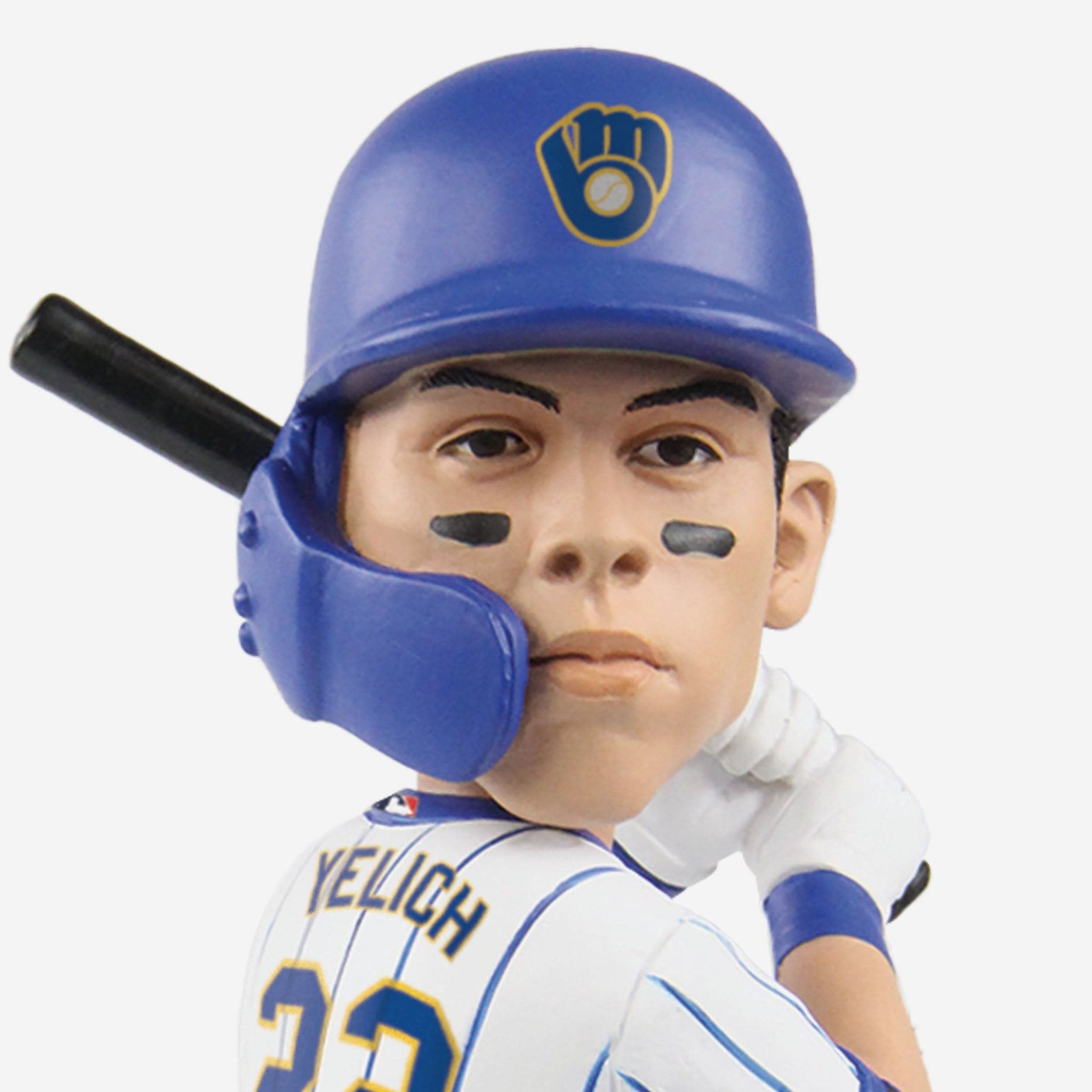 Ready to throw it back with Yeli and the Brew Crew? Turn back the clock in your collection with this Christian Yelich Milwaukee Brewers Retro Jersey Bobblehead.