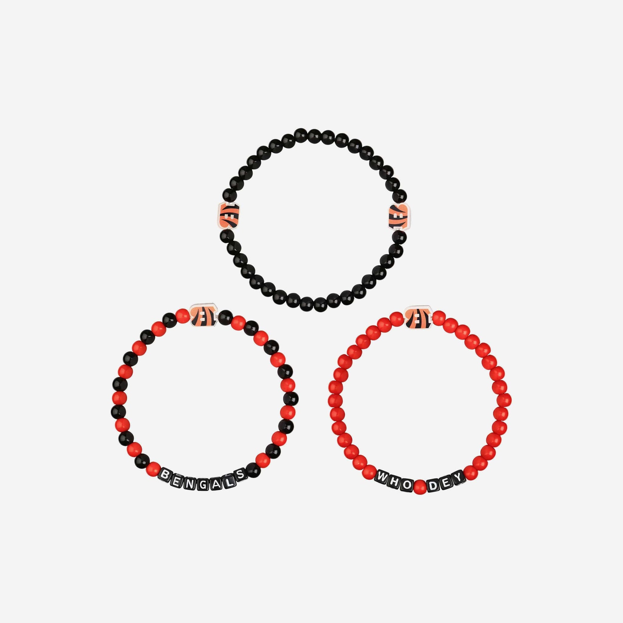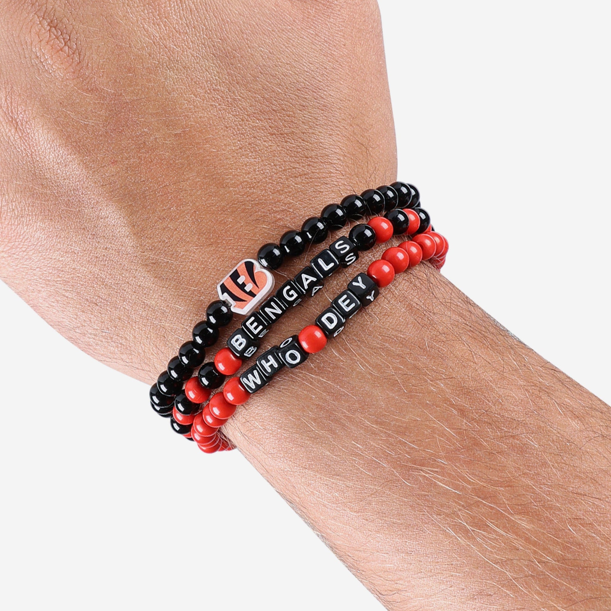 A whole new way to rep the team in style is here. Step up your fan fashion sense with this Cincinnati Bengals 3 Pack Beaded Friendship Bracelet. These matching friendship bracelets have an all-over team-colored design and team logo displays, which makes them the perfect way to show your support for the Cincinnati Bengals on gamedays and every day in between.