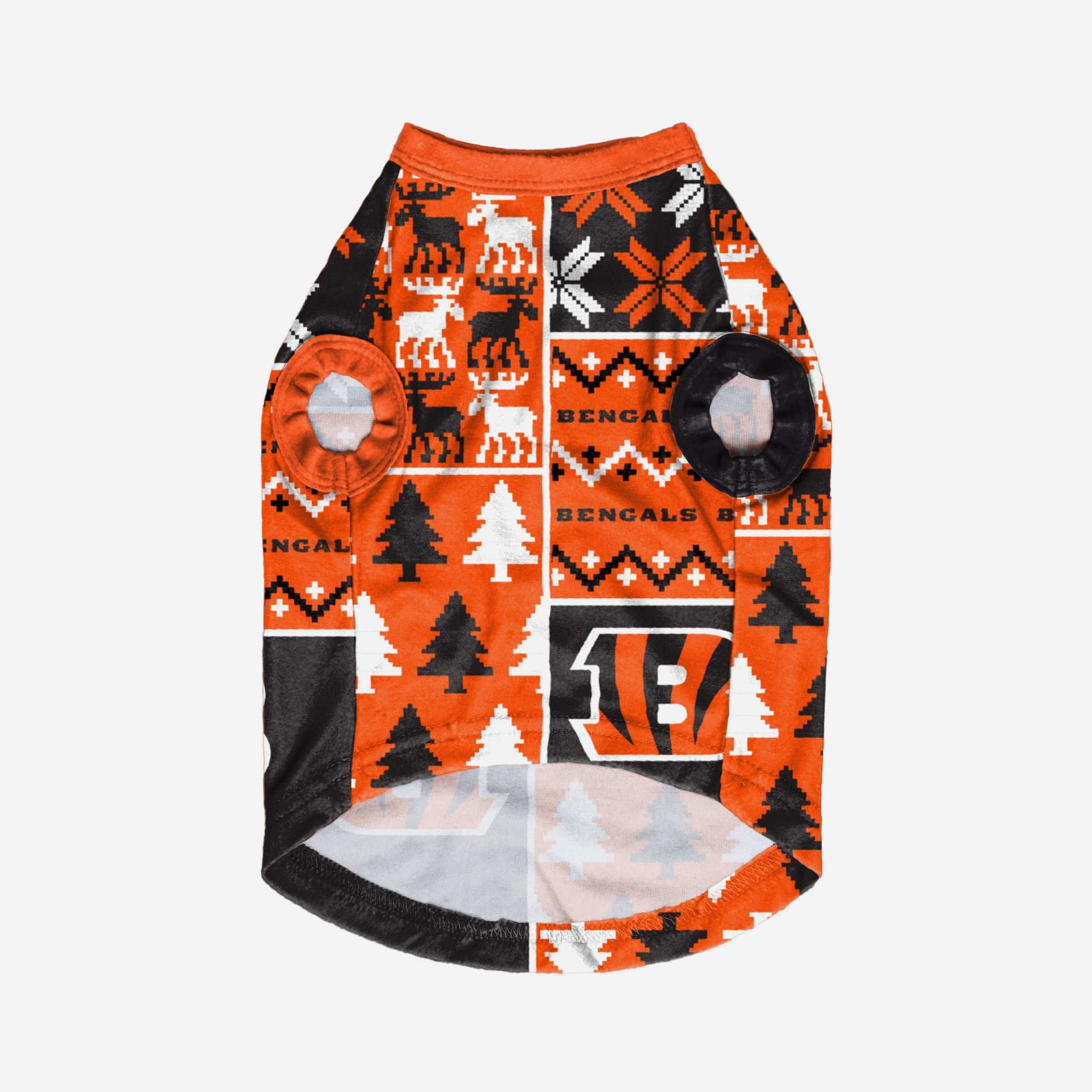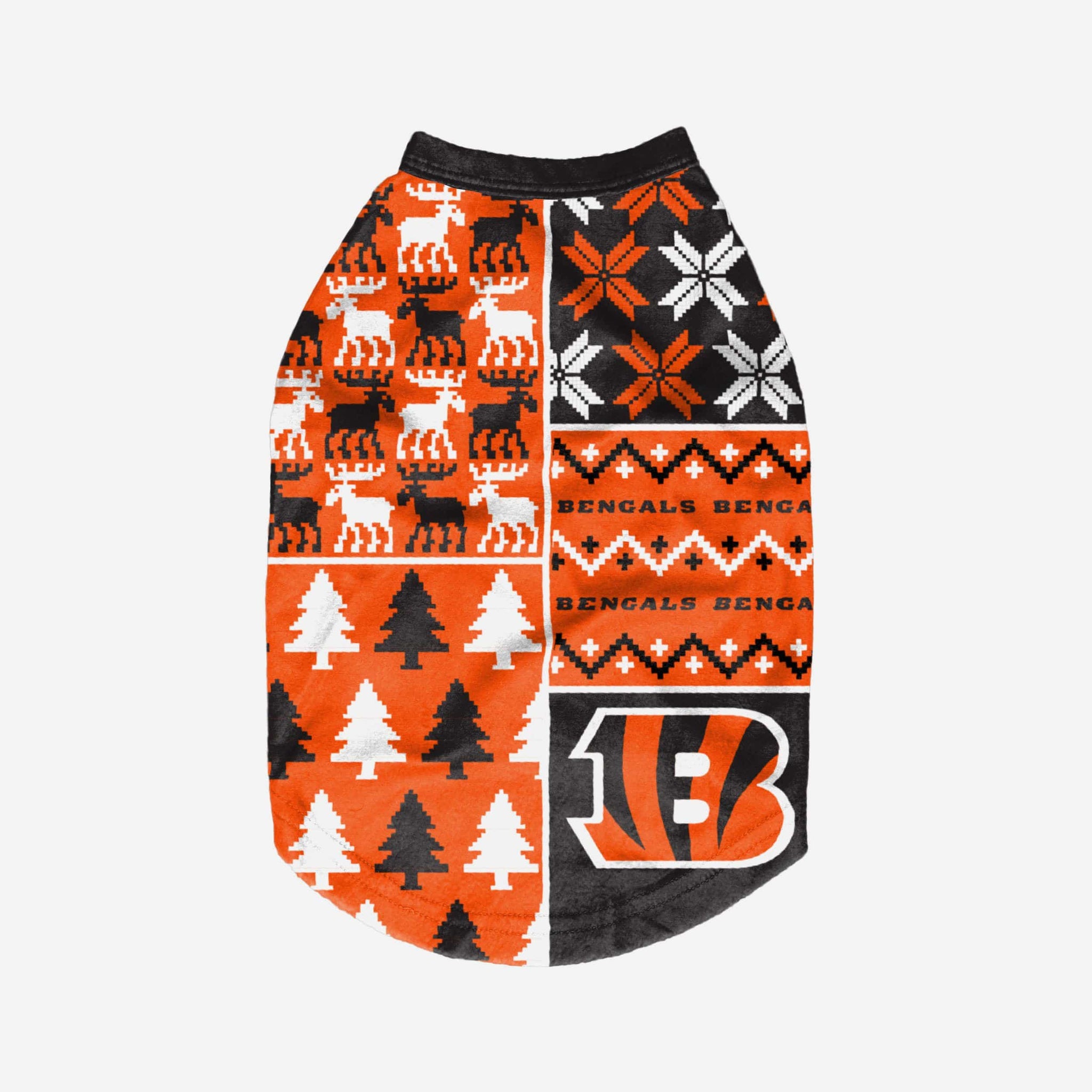 Show off your pet's holiday spirit with this dog sweater! Your good boy (or girl) will love this Cincinnati Bengals Busy Block Dog Sweater so much, they'll be saying "woof bark awooo" (that's "thank you" in pup language). Don't forget to match your canine's sweater with a set of matching holiday pajamas!