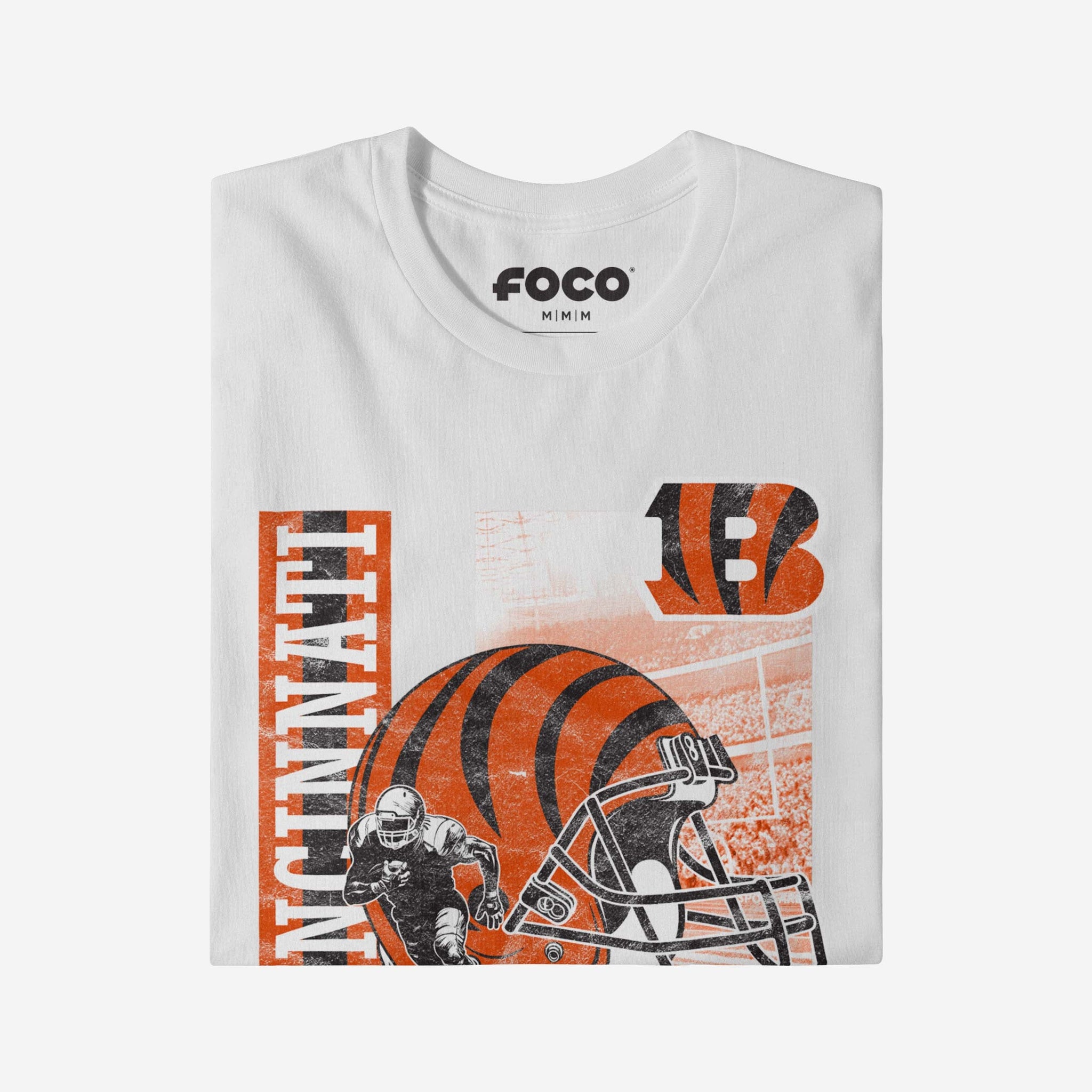 Make a dash for the endzone with a legendary addition to your fan fit! Score big on style and team pride with the Cincinnati Bengals Helmet Dash T-Shirt.