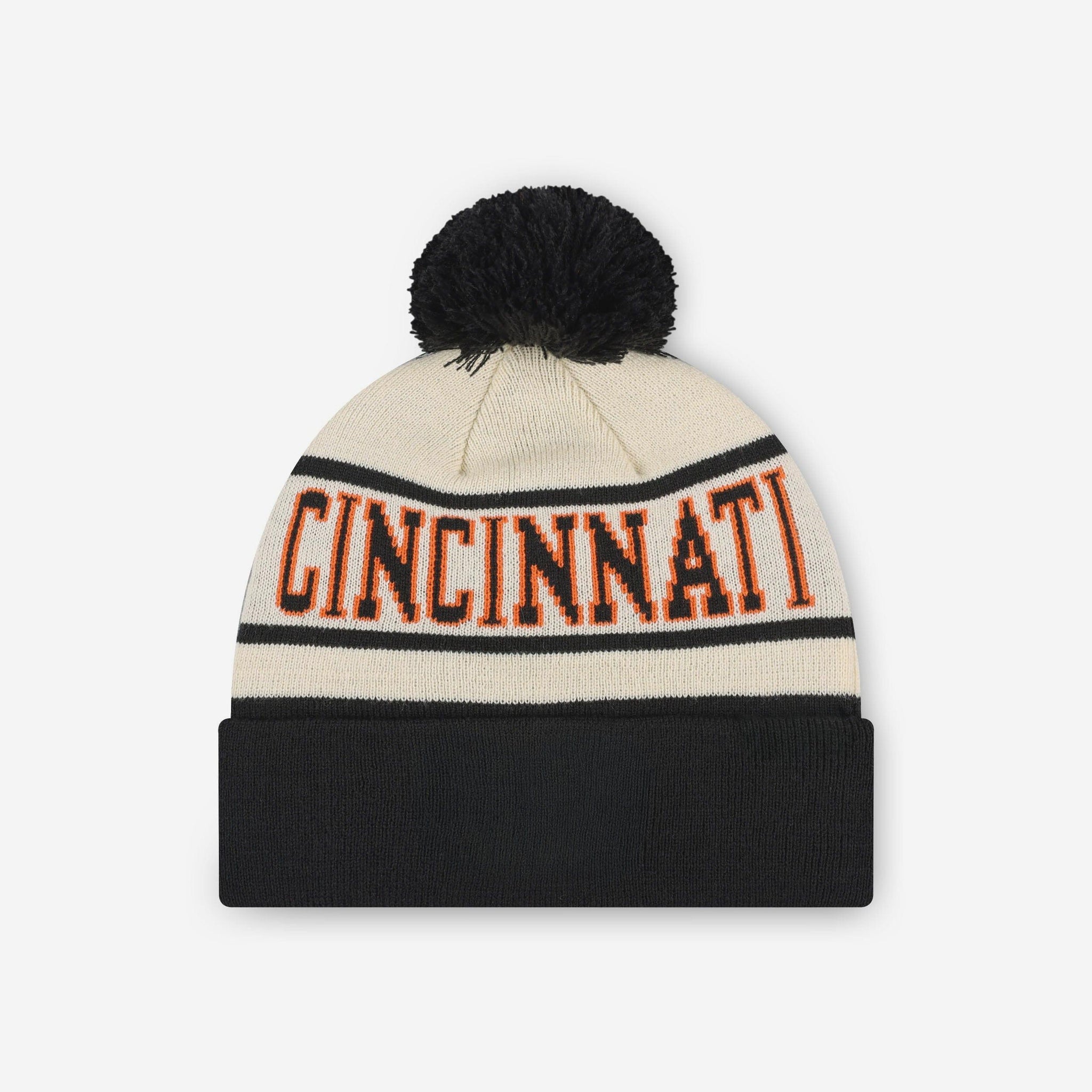 Cincinnati Bengals Heritage Stripe Primary Logo Pom Beanie