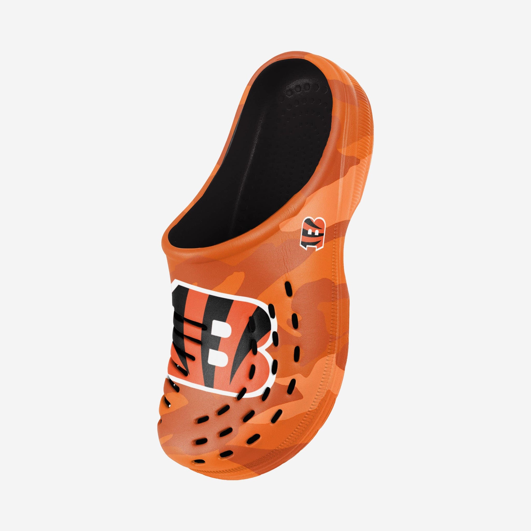 Chanting GO TEAM GO just looks better when you're rocking some camo. Prove your fandom is a STEP above by proudly rocking these Cincinnati Bengals Original Tonal Camo Clogs.