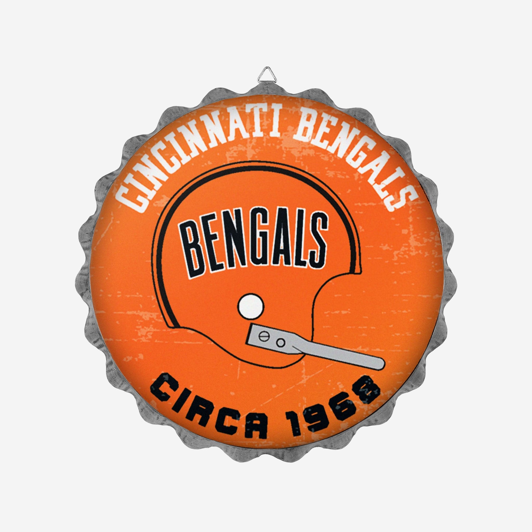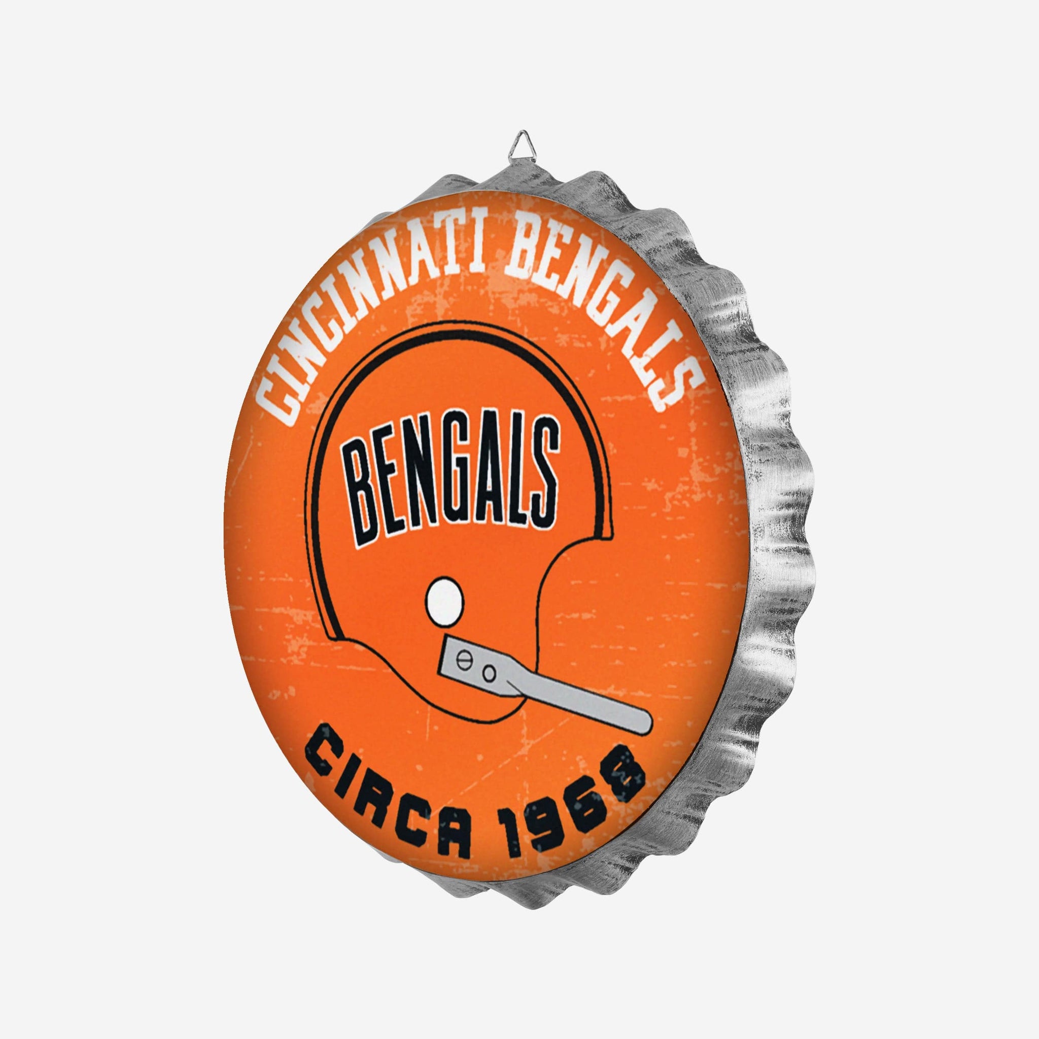 It's time to cap-tivate your fellow fans get ready to go old school. This Cincinnati Bengals Retro Bottle Cap Wall Sign is just what you need to cap off your fancave decorations.