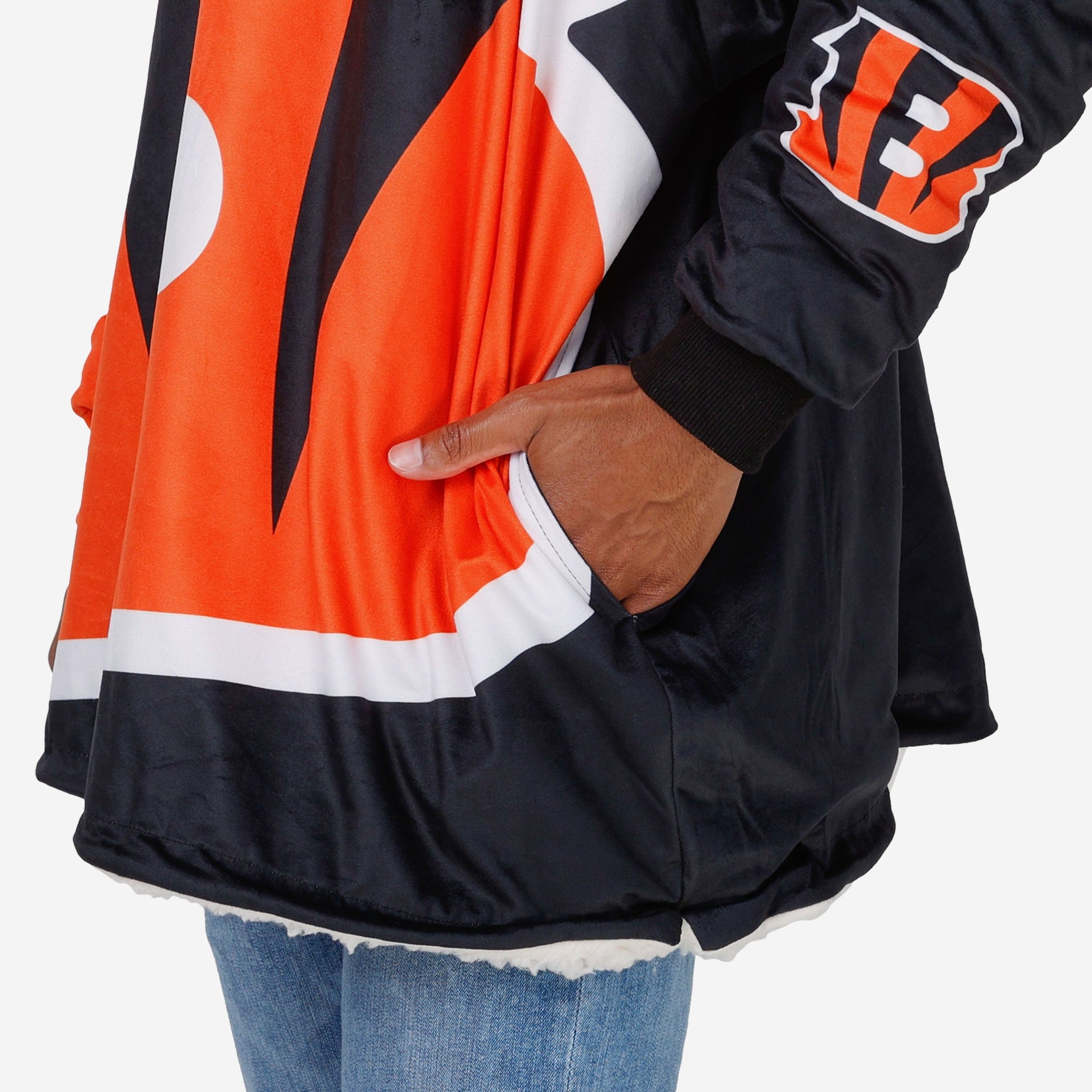Never before has fandom looked so good and felt so relaxing. Lounge like a legend while you cheer your team on to victory by rocking this Cincinnati Bengals Reversible Colorblock Hoodeez.