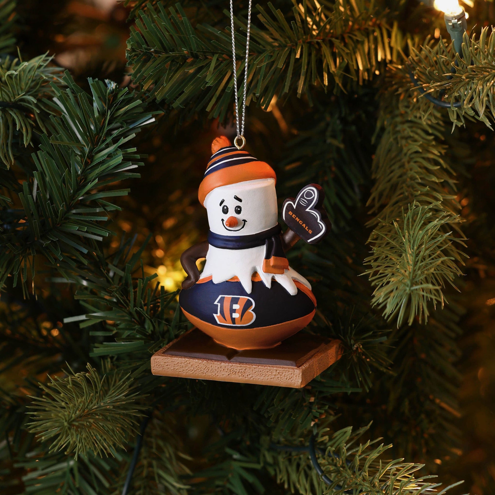 Ingredients for the perfect s'more: Graham crackers, chocolate, marshmallows… and team spirit. Enjoy s'more wins around the holidays by showing off this Cincinnati Bengals Smore on Ball Ornament.