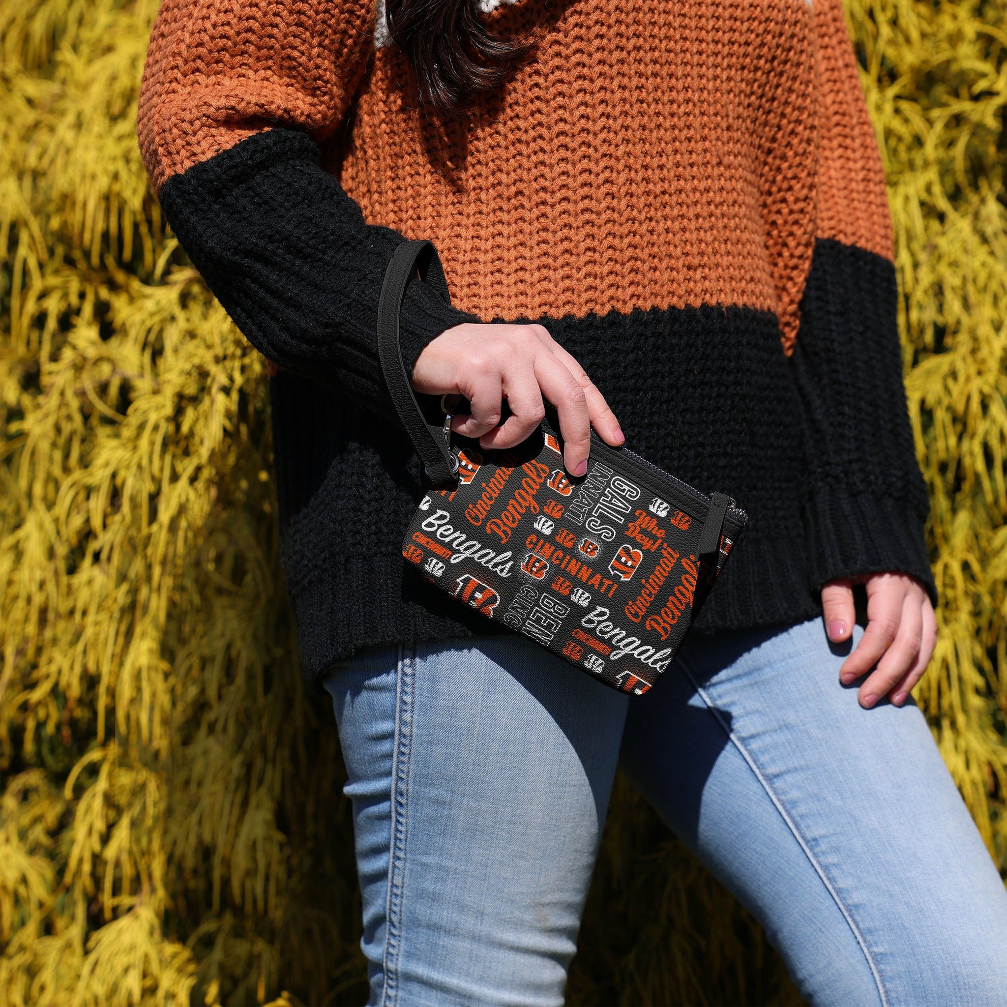 Gamedays on the go are easier and more fashionable than ever before thanks to this Cincinnati Bengals Spirited Style Printed Collection Repeat Logo Wristlet.