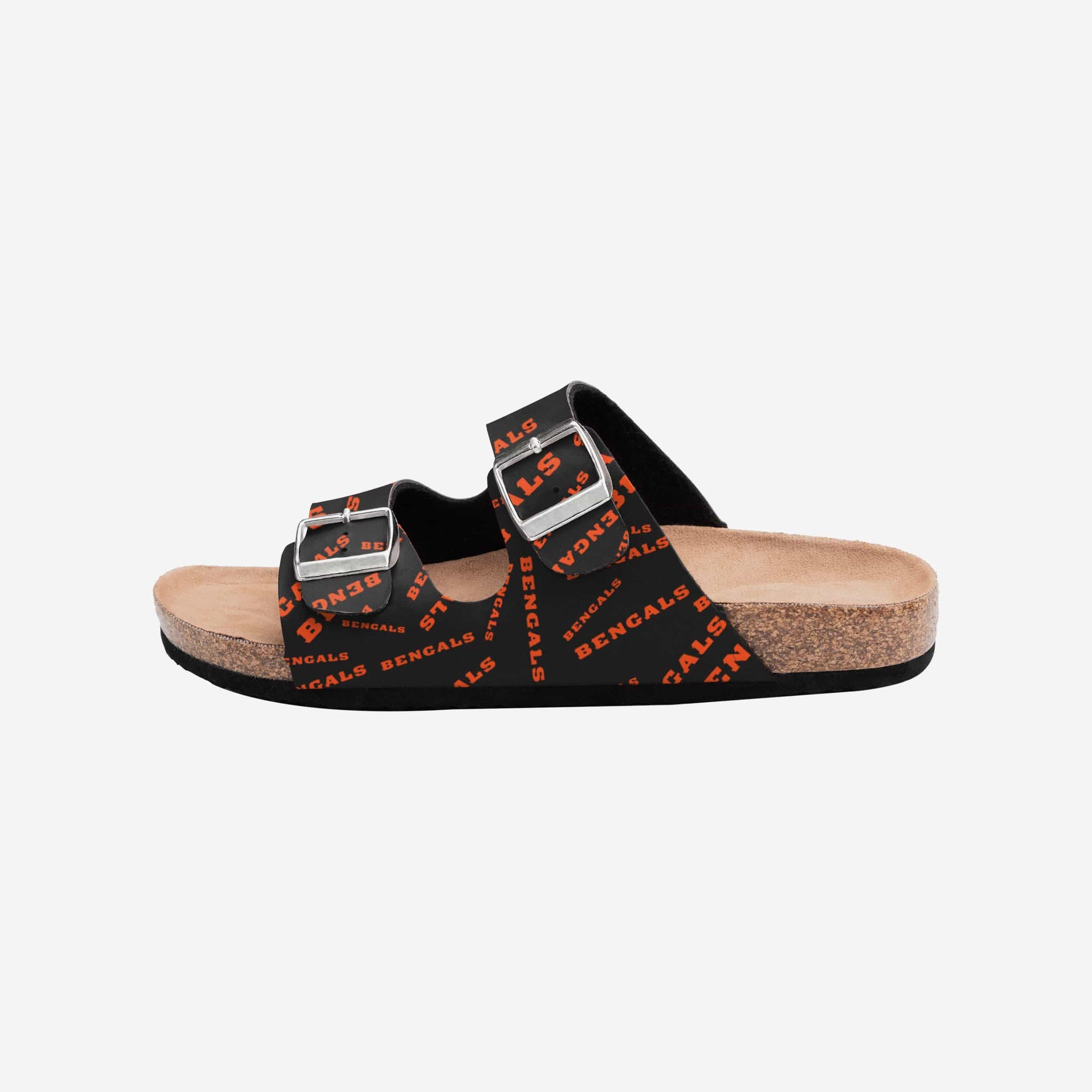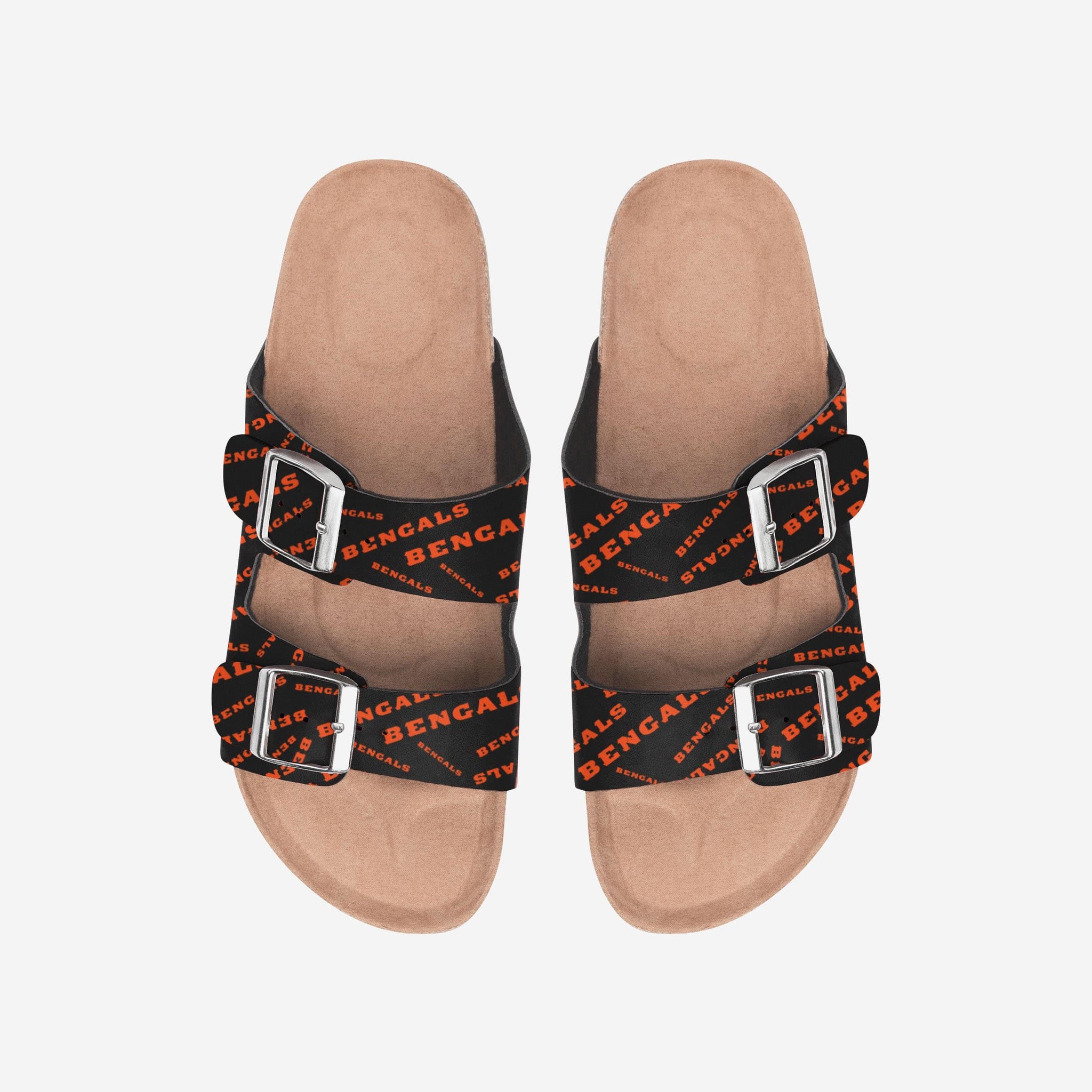 Double your fun. Double your fan. With the Cincinnati Bengals Women's Mini Print Double Buckle Sandals, you can step in style, and not have to worry about getting sand in your shoes during your next beach excursion.