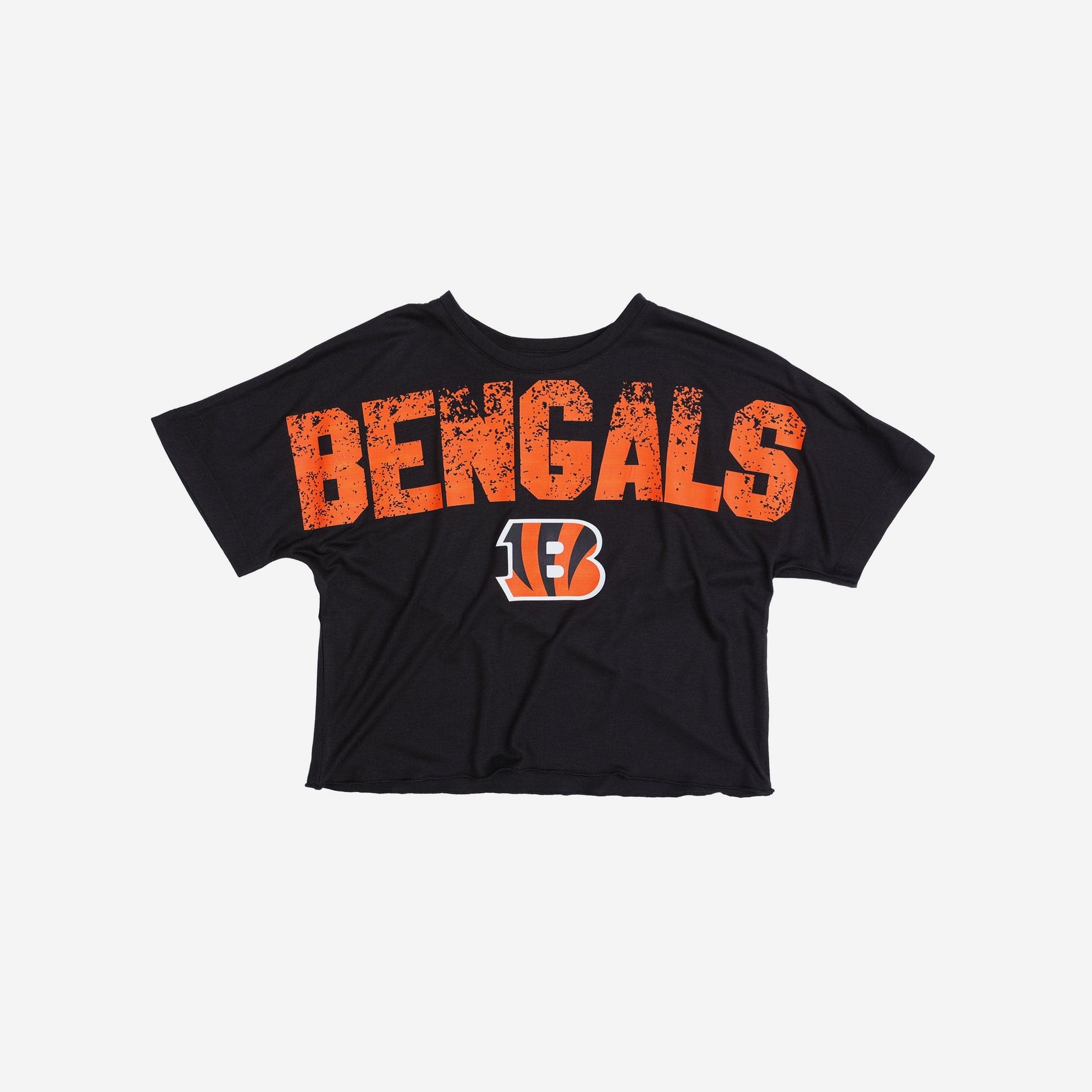 Cincinnati Bengals Womens Petite Distressed Wordmark Crop Top FOCO - FOCO.com