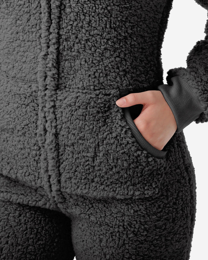 - Embroidered team logo display on left chest, in case there were any doubts where your allegiances lie while you wear these onesie pajamas
