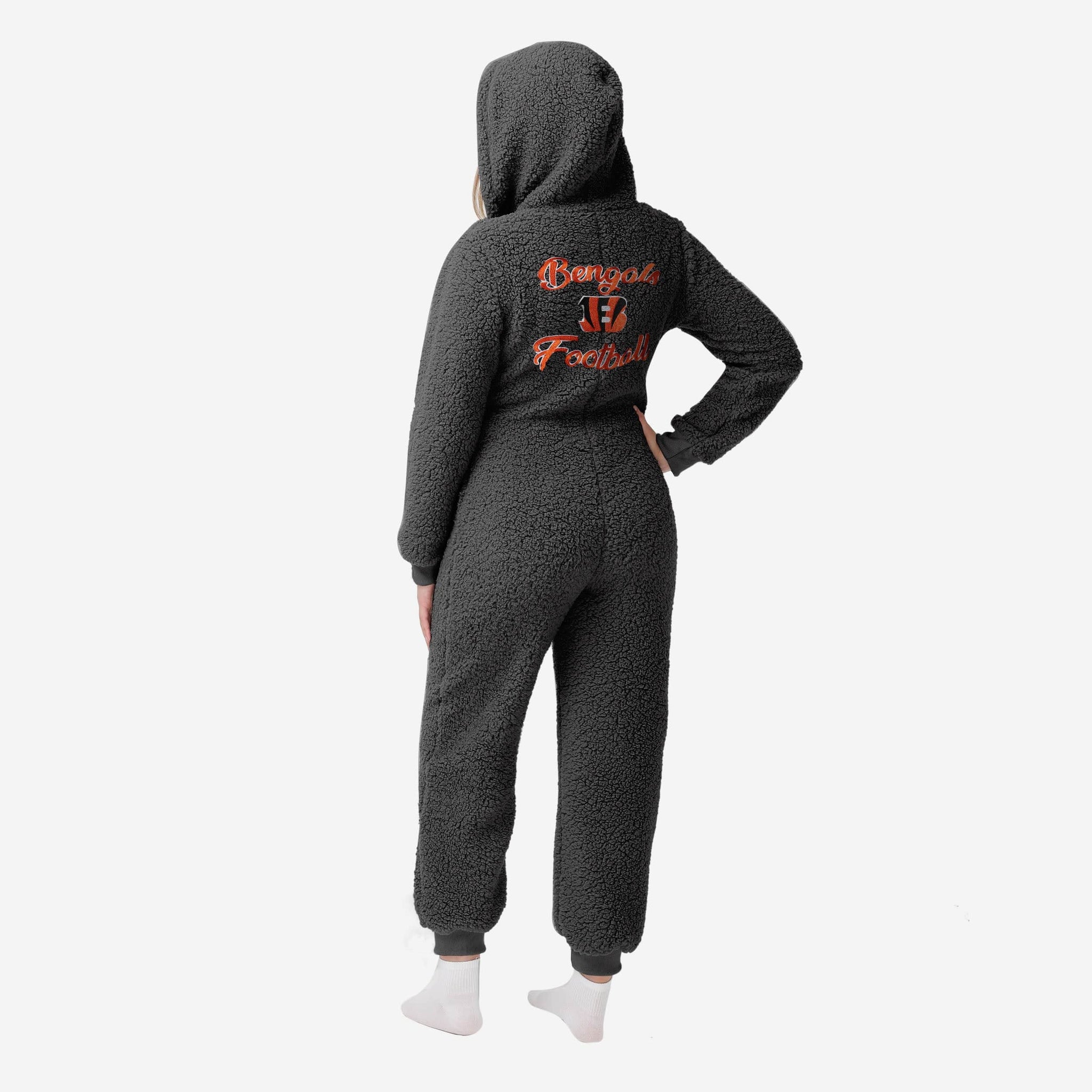 Get some matching family pajamas and dress to impress this holiday season! You won't want to miss these onesie team pajamas! These women's PJ's are comfortable and show off your team spirit in the form of some sweet one piece jammies. Introducing the Cincinnati Bengals Women's Sherpa One Piece Pajamas! Don't forget to take your holiday photo with the whole family wearing matching Christmas pajamas!