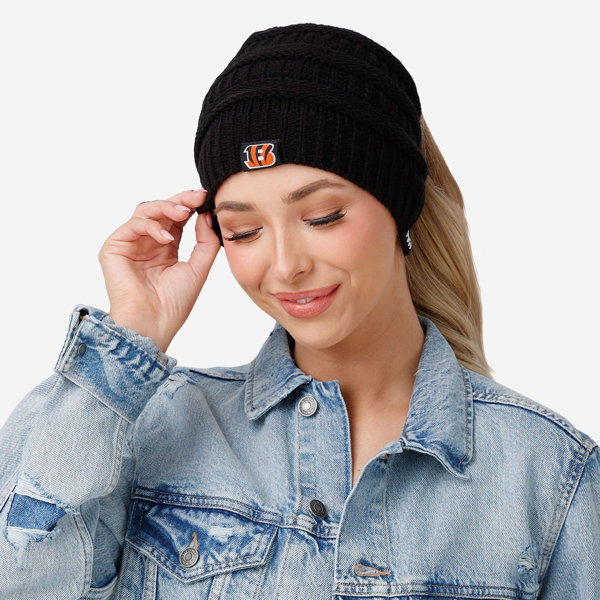 Putting together the ultimate fit for the tailgate and beyond? Make sure to get your head in the game with the Cincinnati Bengals Women's Solid Ponytail Beanie!