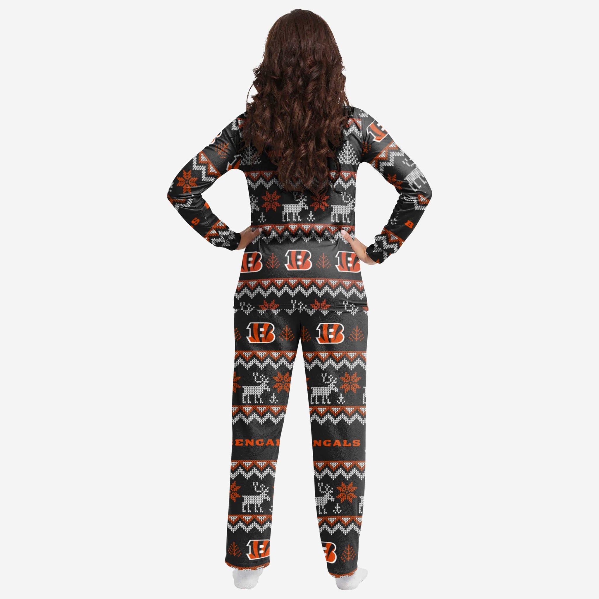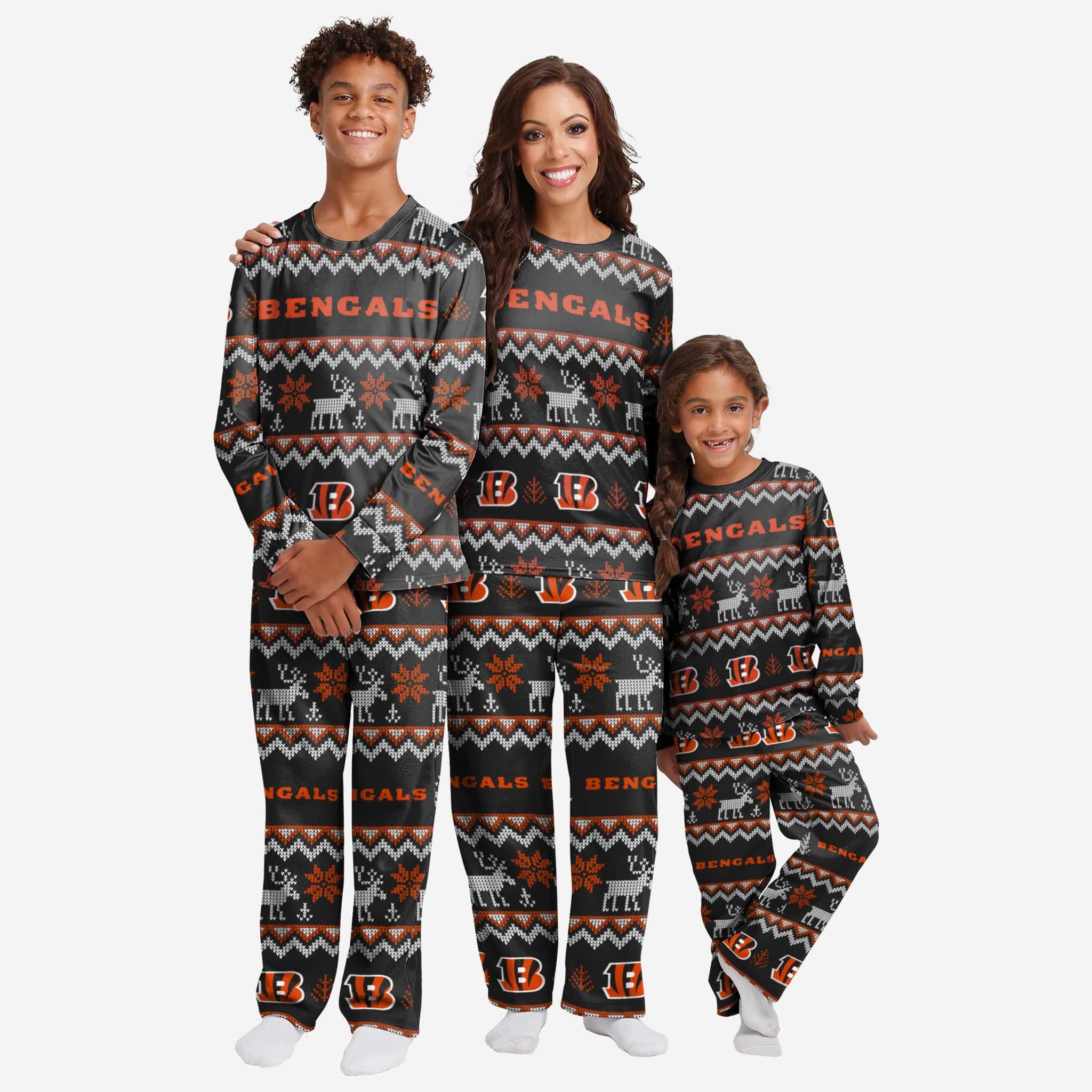 Get some matching family pajamas and dress to impress this holiday season! You won't want to miss these women's team pajamas! These women's PJ's are comfortable and show off your team spirit in the form of some sweet women's jammies. Introducing the Cincinnati Bengals Women's Ugly Pattern Family Holiday Pajamas! Don't forget to take your holiday photo with the whole family wearing matching Christmas pajamas!