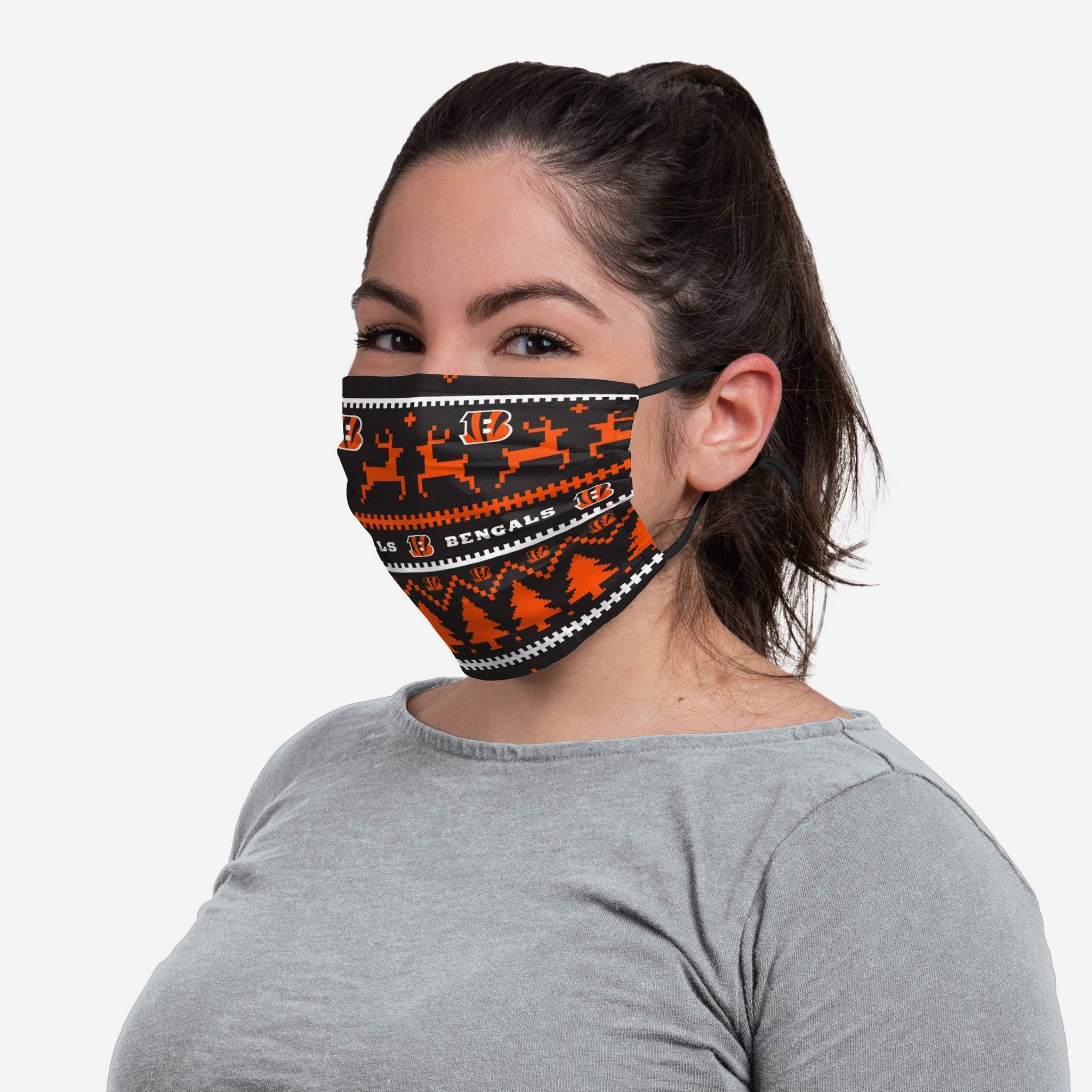 Cover up while you represent your favorite team in this Cincinnati Bengals Wordmark Holiday Adjustable face covering!