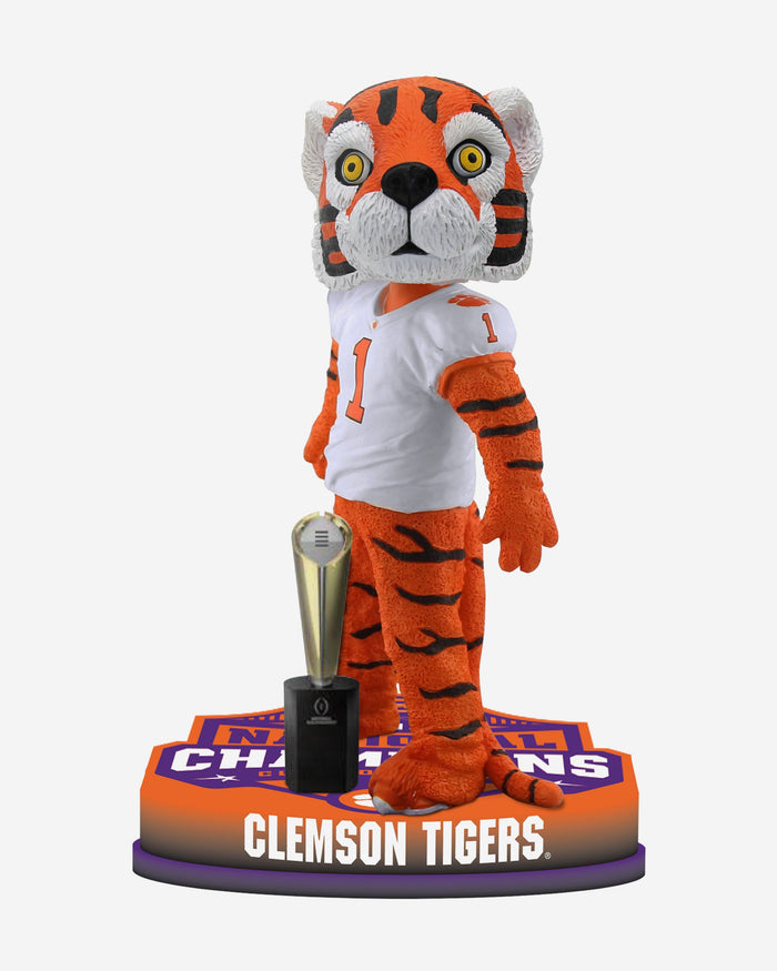 15-0. Undefeated. ACC champs. National champs. The Clemson Tigers powered through each game and ended the season hoisting the trophy. You might not have been on the team, but your efforts as a fan deserve to be rewarded. This Clemson Tigers 2018 Football National Champions Mascot Base Bobblehead is like a trophy for being a great fan. So, congrats. Hoist away!
