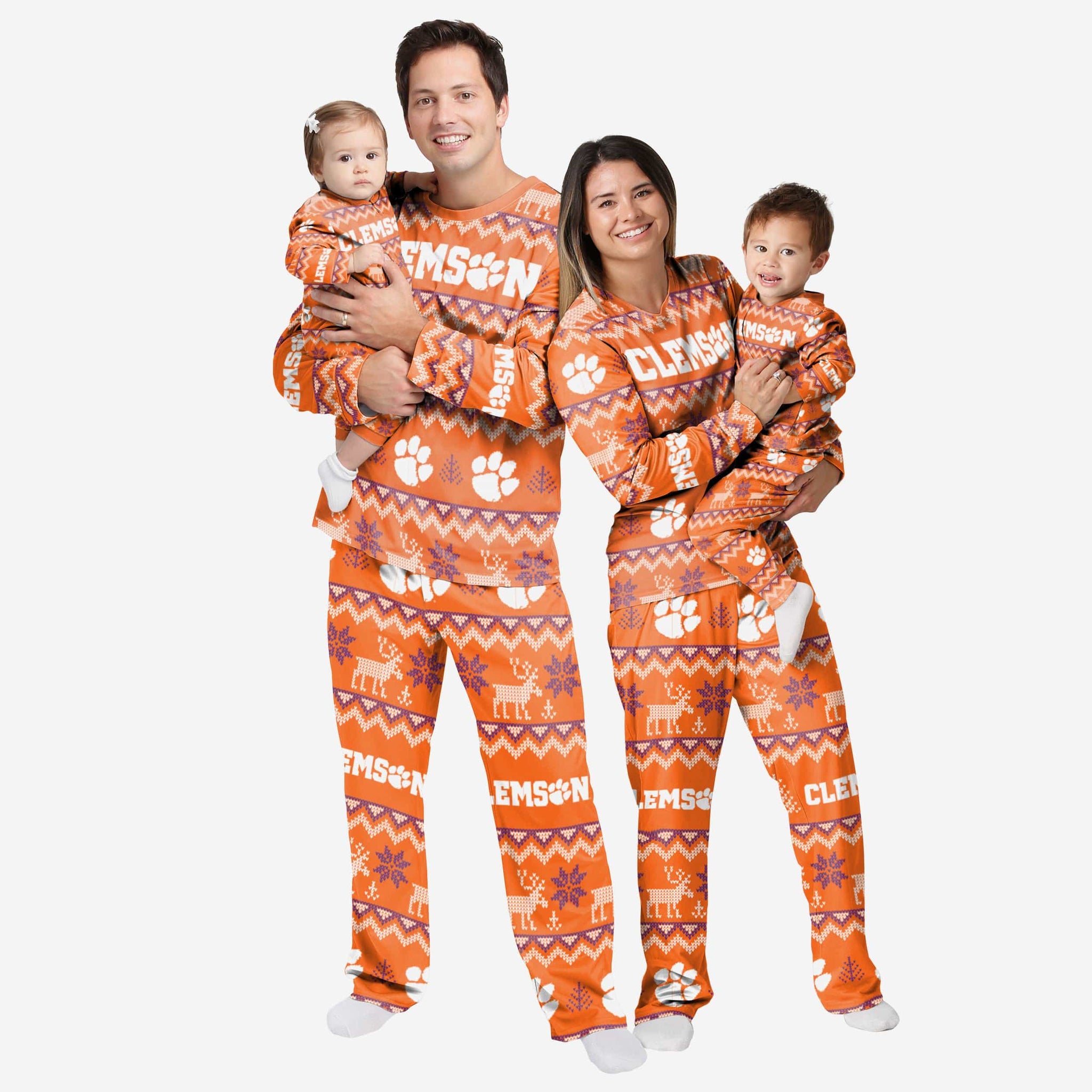 Get your young fan started early this holiday season in these Clemson Tigers Infant Ugly Pattern Family Holiday Pajamas! Your baby will absolutely love these matching Christmas pajamas! Make sure your infant enjoys sweet dreams filled with holiday joy by having them sleep in infant pajamas. Don’t forget to take your holiday photo with the whole family wearing matching Christmas pajamas!