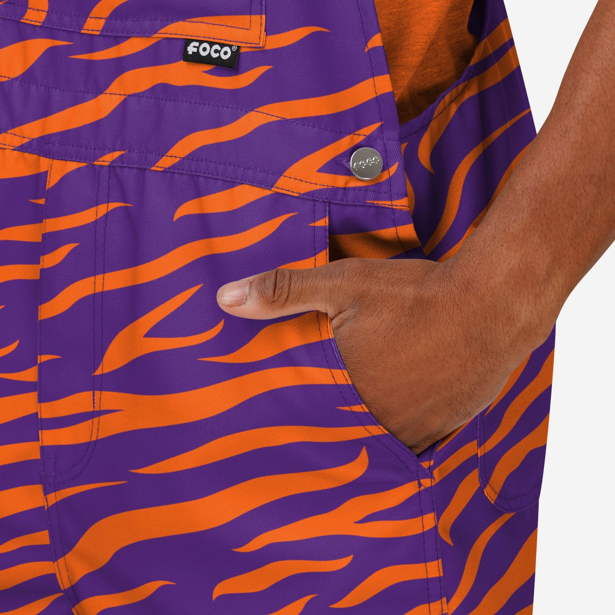- All-over team-colored design: These shortalls are covered in the official Clemson Tigers colors, so you can show your team spirit with pride.