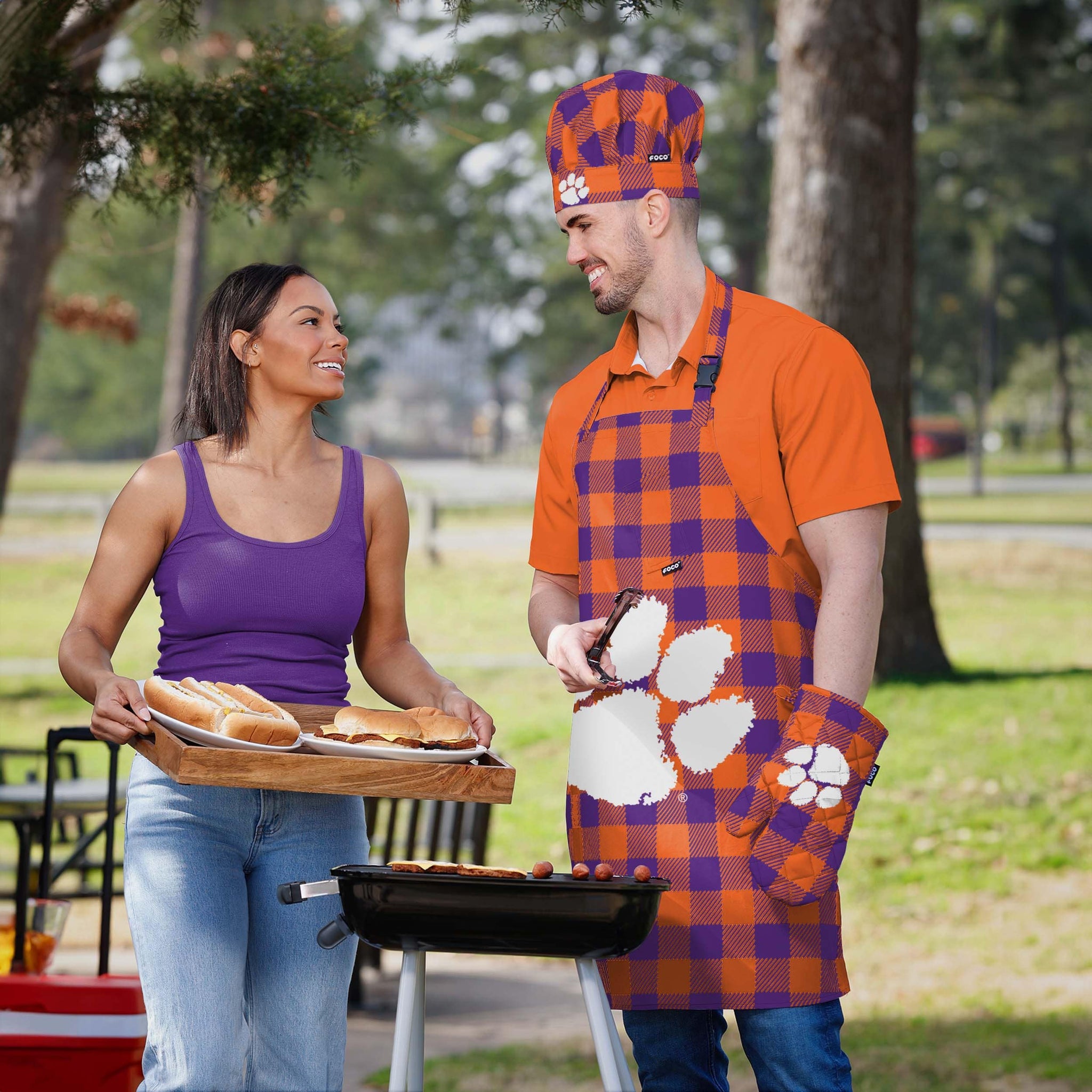 Get ready to serve up the best food in the greatest fan fit. From the kitchen, to the table, to game day, do it all in style with the Clemson Tigers Plaid Chef Set.