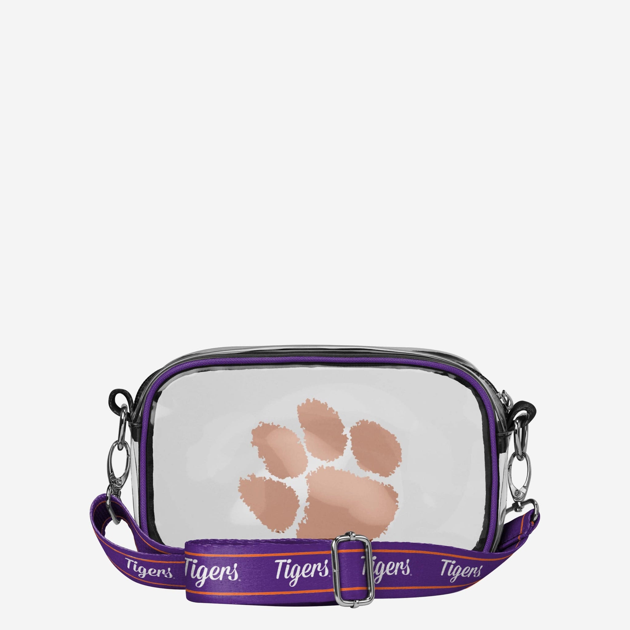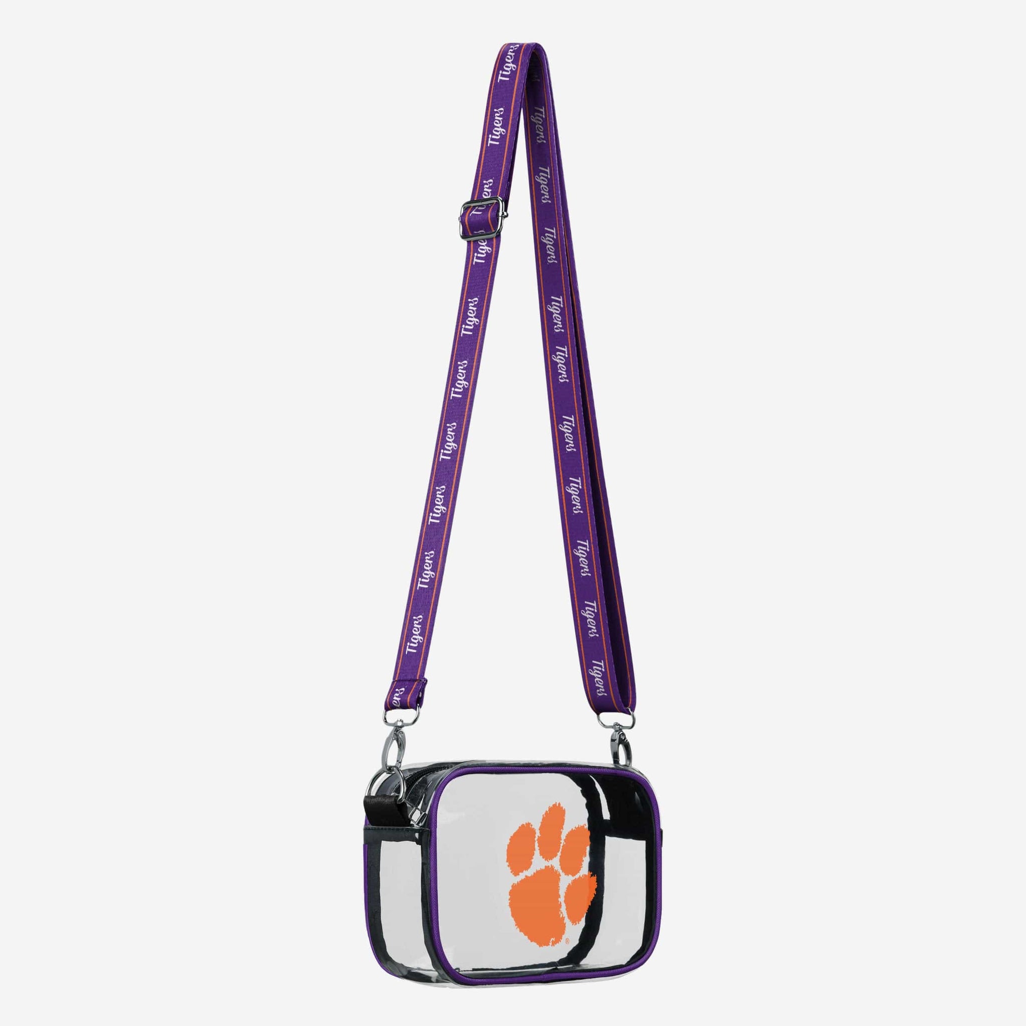 Over your shoulder and off to the game. Whether you're running errands on the town or running the tailgate in the parking lot, this Clemson Tigers Team Stripe Clear Crossbody Bag is the perfect way to carry the team like never before.