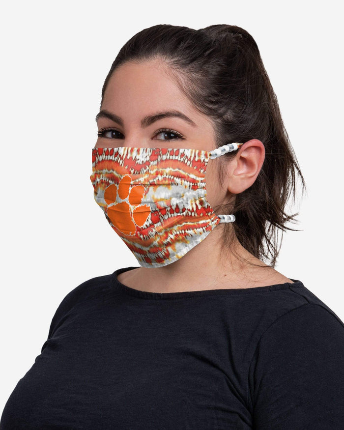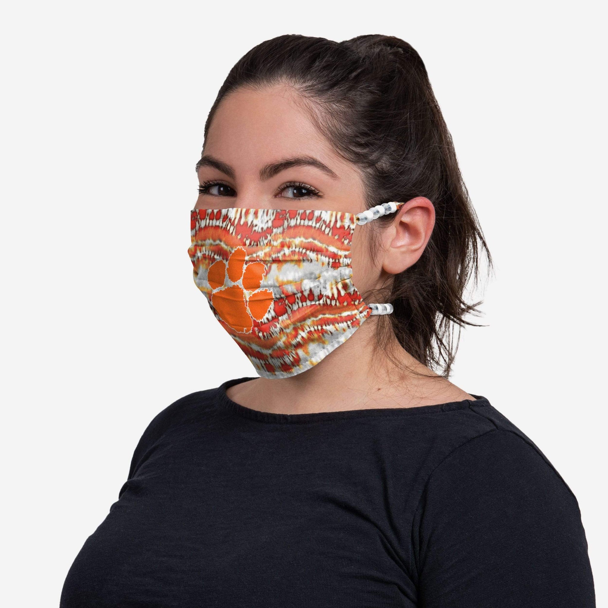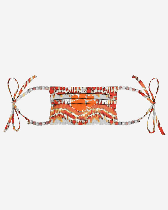 Cover up while you represent your favorite team in this Clemson Tigers Tie-Dye Beaded Tie-Back face covering!