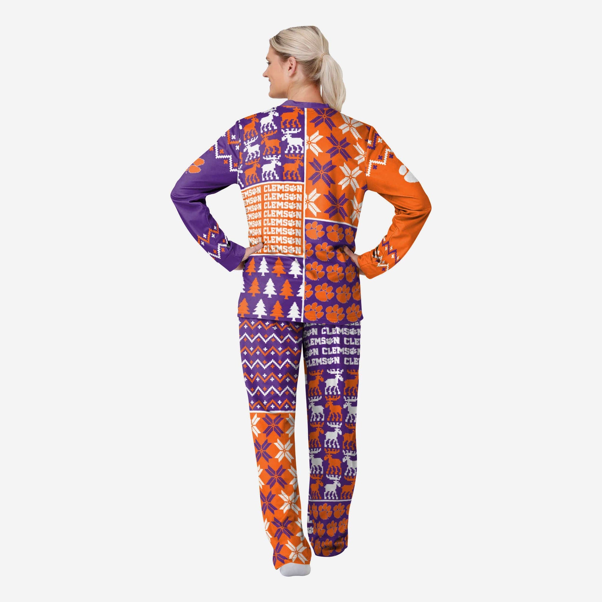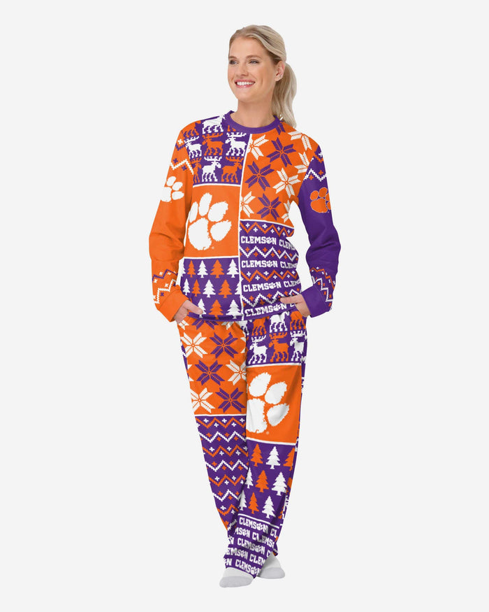 Get some matching family pajamas and dress to impress this holiday season! You won't want to miss these women's team pajamas! These women's PJ's are comfortable and show off your team spirit in the form of some sweet women's jammies. Introducing the Clemson Tigers Women's Busy Block Family Holiday Pajamas! Don't forget to take your holiday photo with the whole family wearing matching Christmas pajamas!