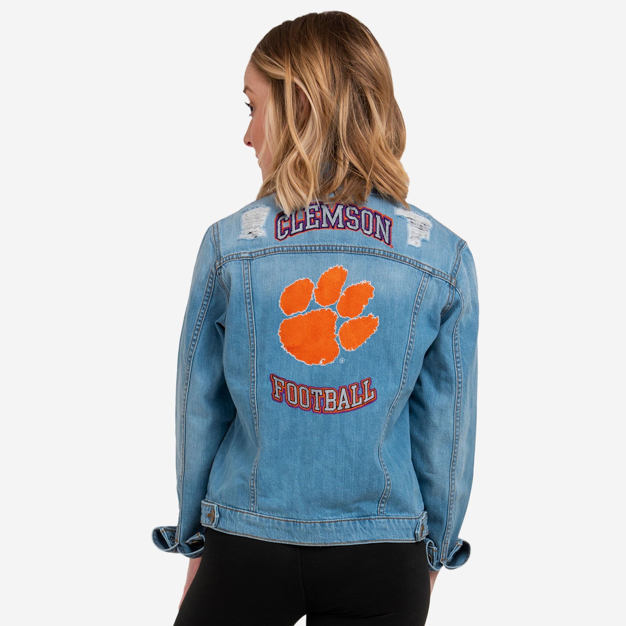 The Clemson Tigers Women's Denim Days Jacket is the ultimate wild card of your wardrobe. Pair it with a dress? Sure. Wear it over a t-shirt? Why not? Show it off at a summer concert? Go for it. Rock it to the tailgate when the weather gets cool? You can do that, too. The only limits of this jacket are the ones you place on it.