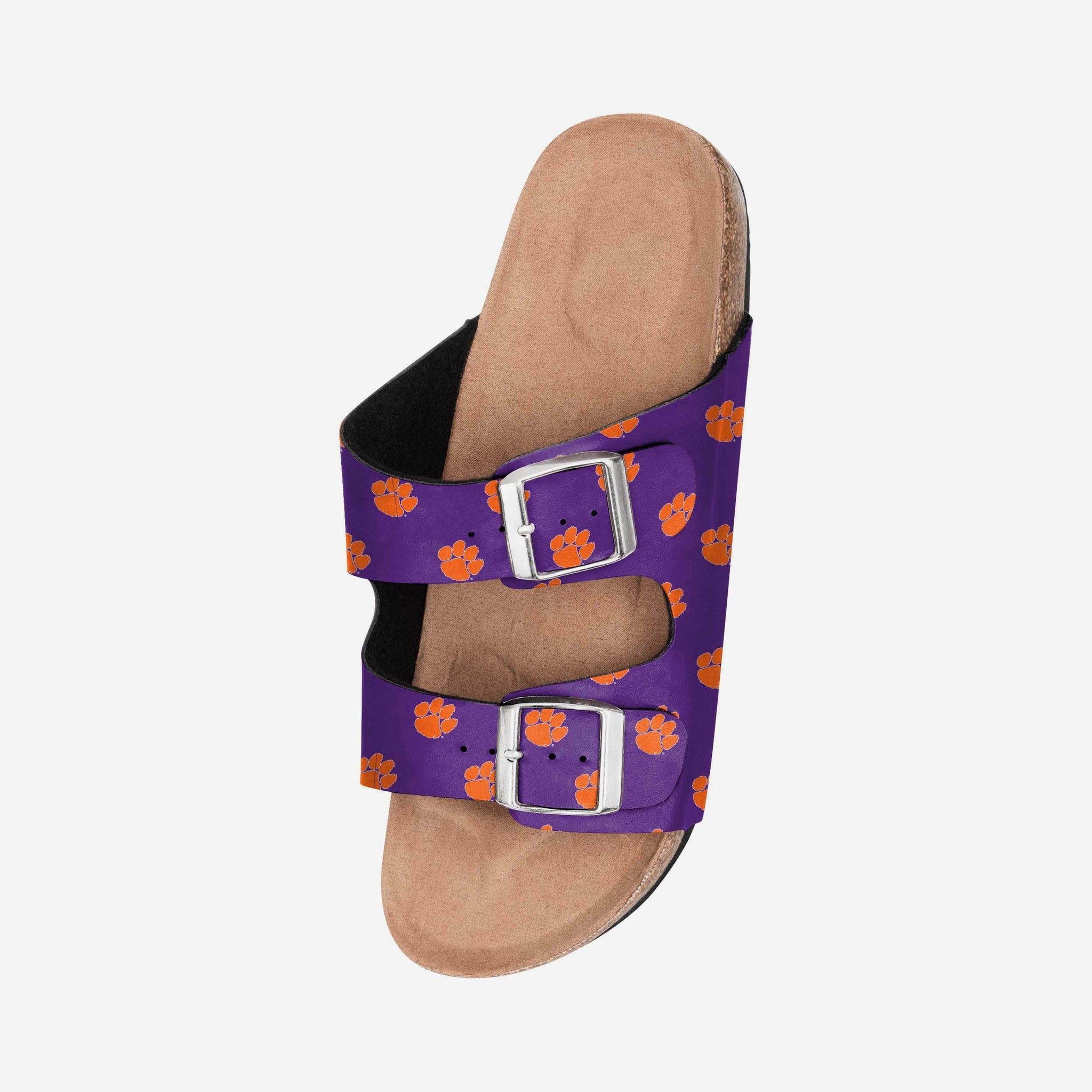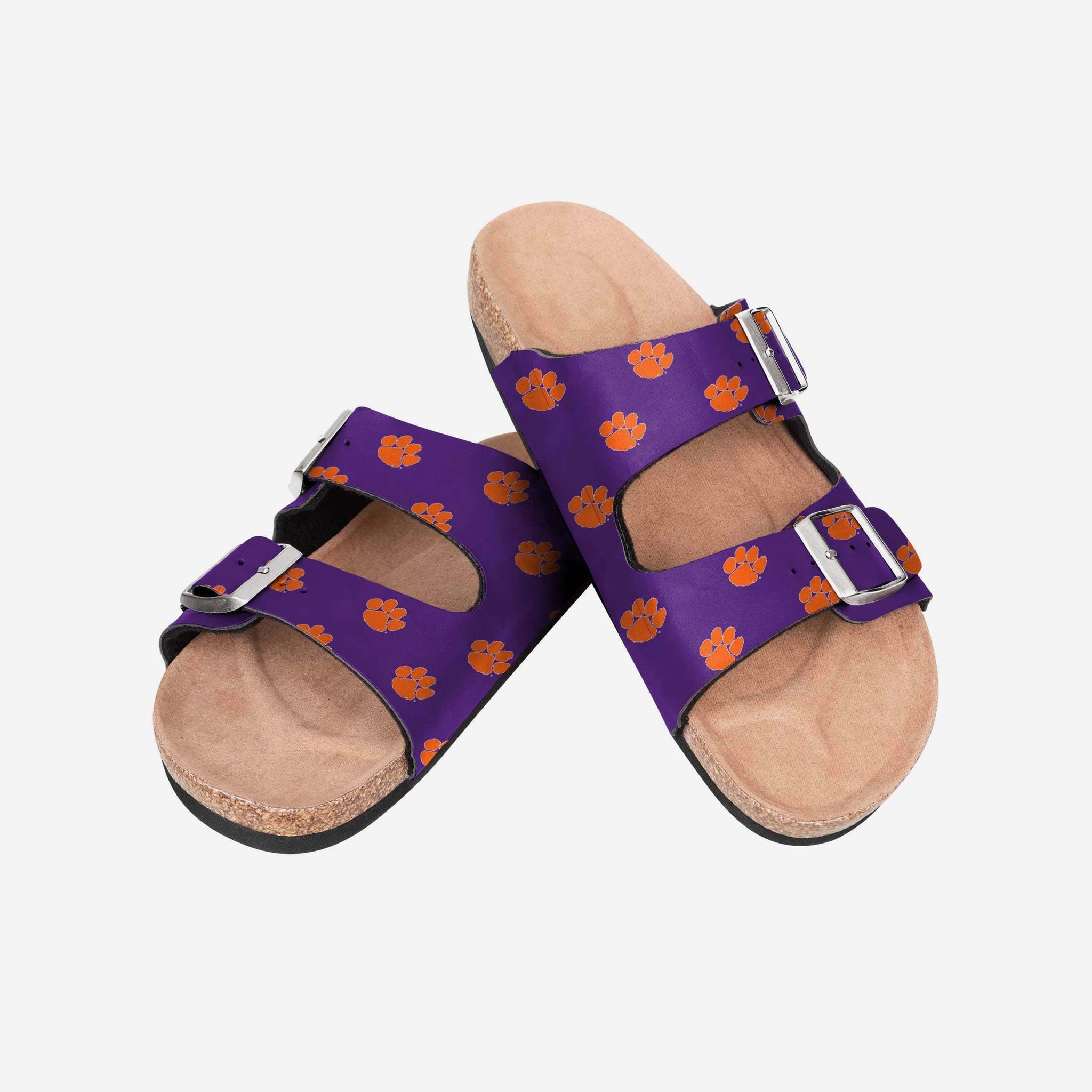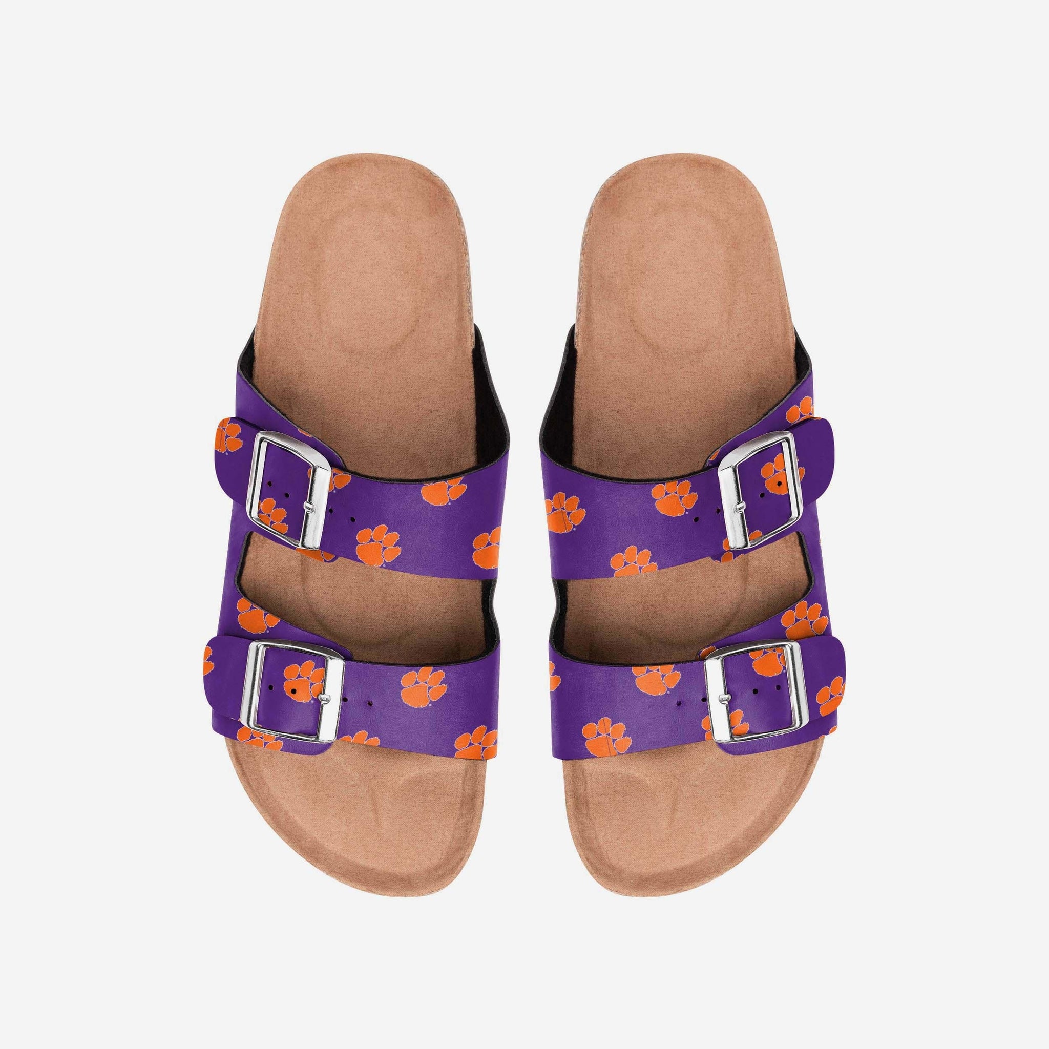 Double down on your fan fashion with these Clemson Tigers Women's Team Logo Double Buckle Sandals. Get your fan on AND get your tan on in the backyard, at the beach, at the pool, or wherever your fan feet take you.