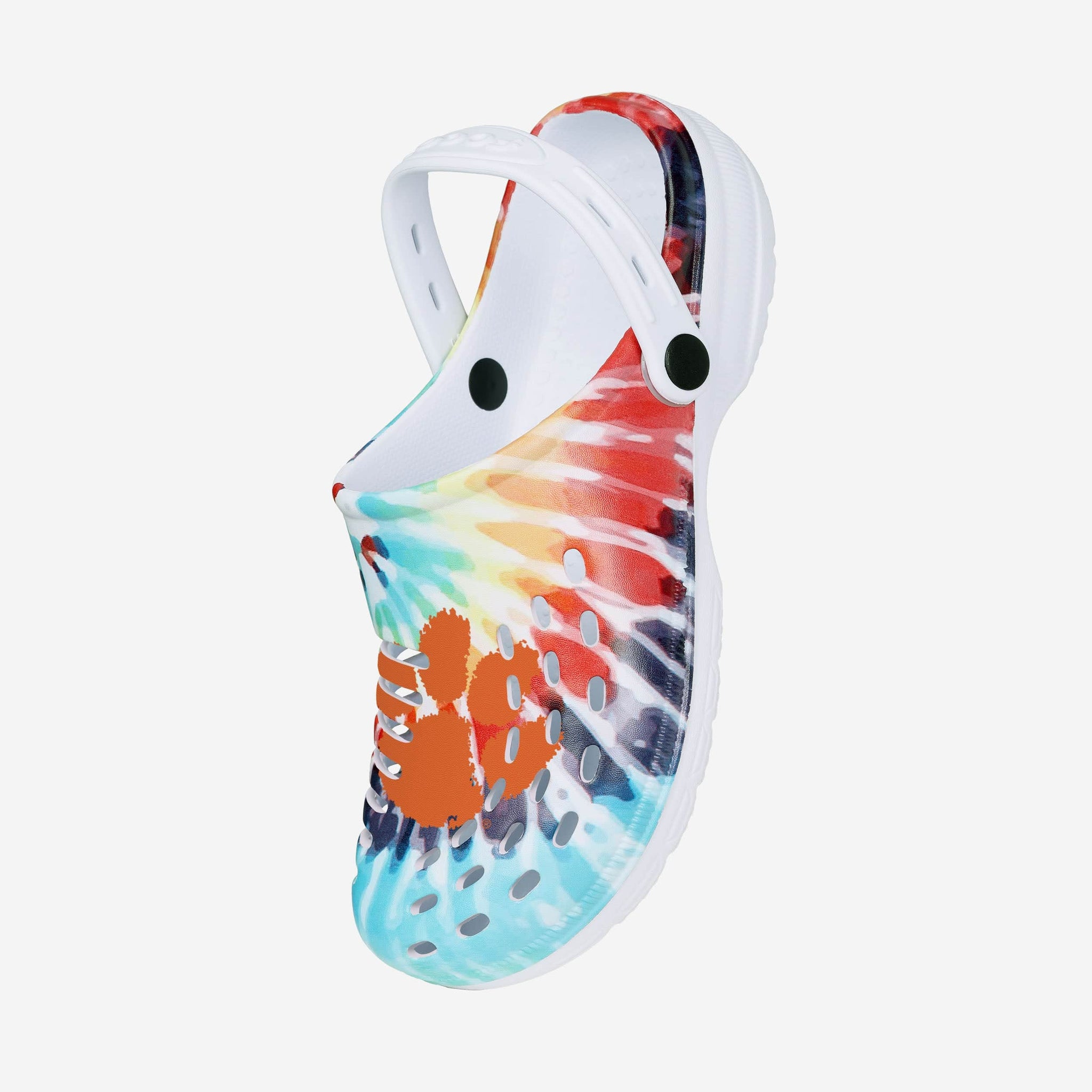 Peace. Love. Tie-dye. Step back in time with some style from yesteryear by rocking these Clemson Tigers Women's Tie-Dye Clogs with Straps.
