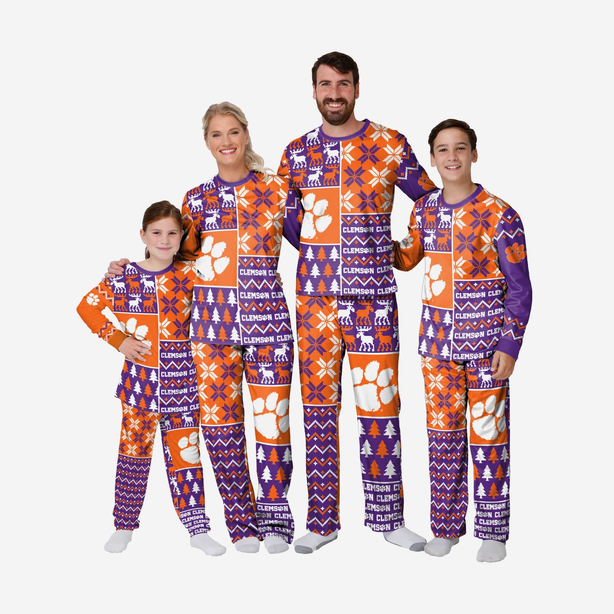 Get some matching family pajamas and dress to impress this holiday season! You won't want to miss these kids' team pajamas! These youth PJ's are comfortable and show off your team spirit in the form of some sweet youth jammies. Introducing the Clemson Tigers Youth Busy Block Family Holiday Pajamas! Don't forget to take your holiday photo with the whole family wearing matching Christmas pajamas!