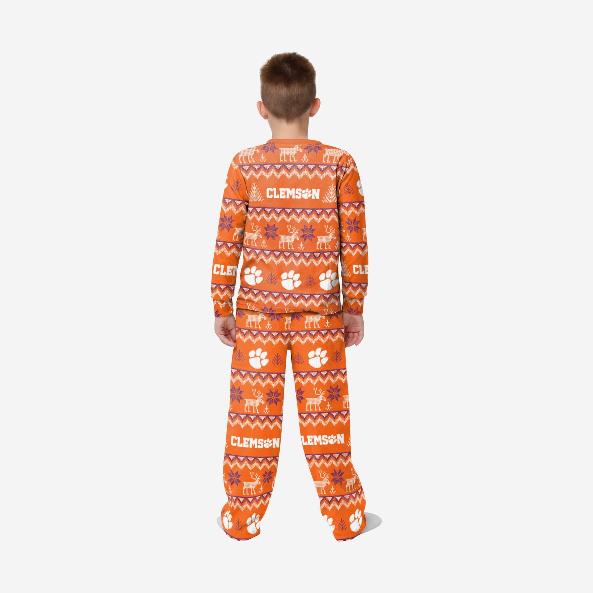 Clemson Tigers Youth Ugly Pattern Family Holiday Pajamas FOCO - FOCO.com