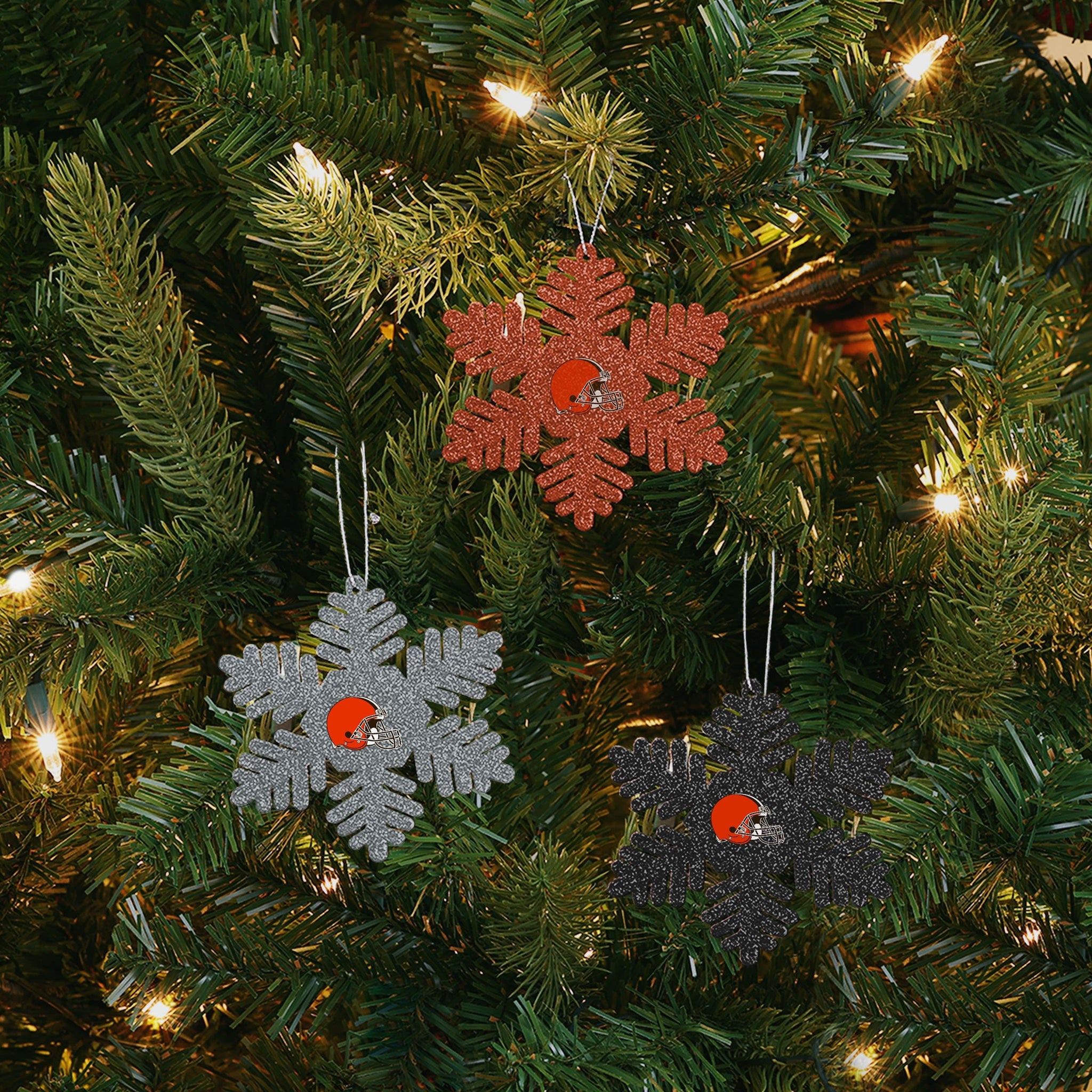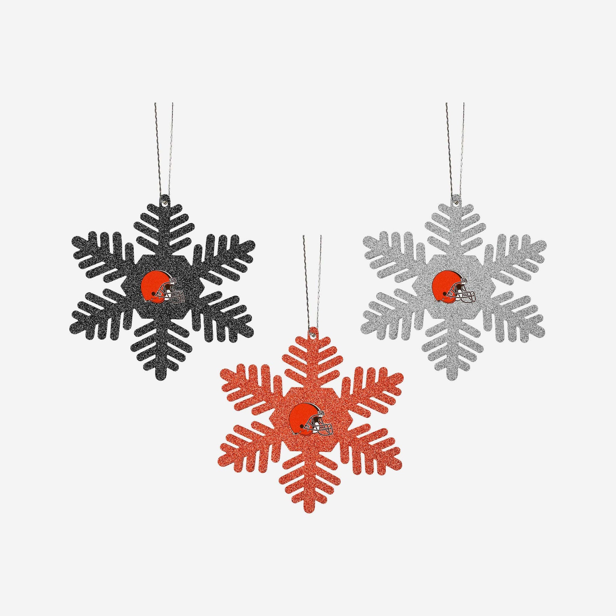 Cleveland Browns 3 Pack Metal Glitter Snowflake Ornament FOCO - FOCO.com