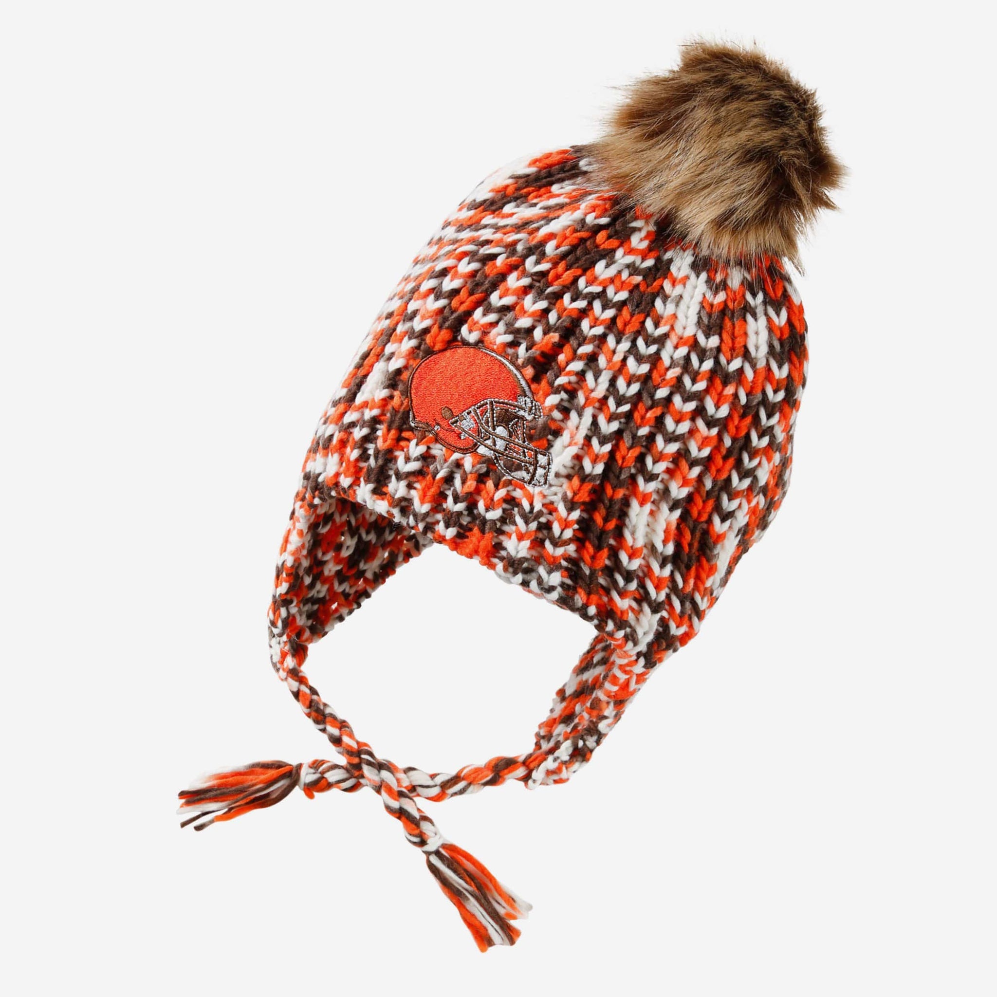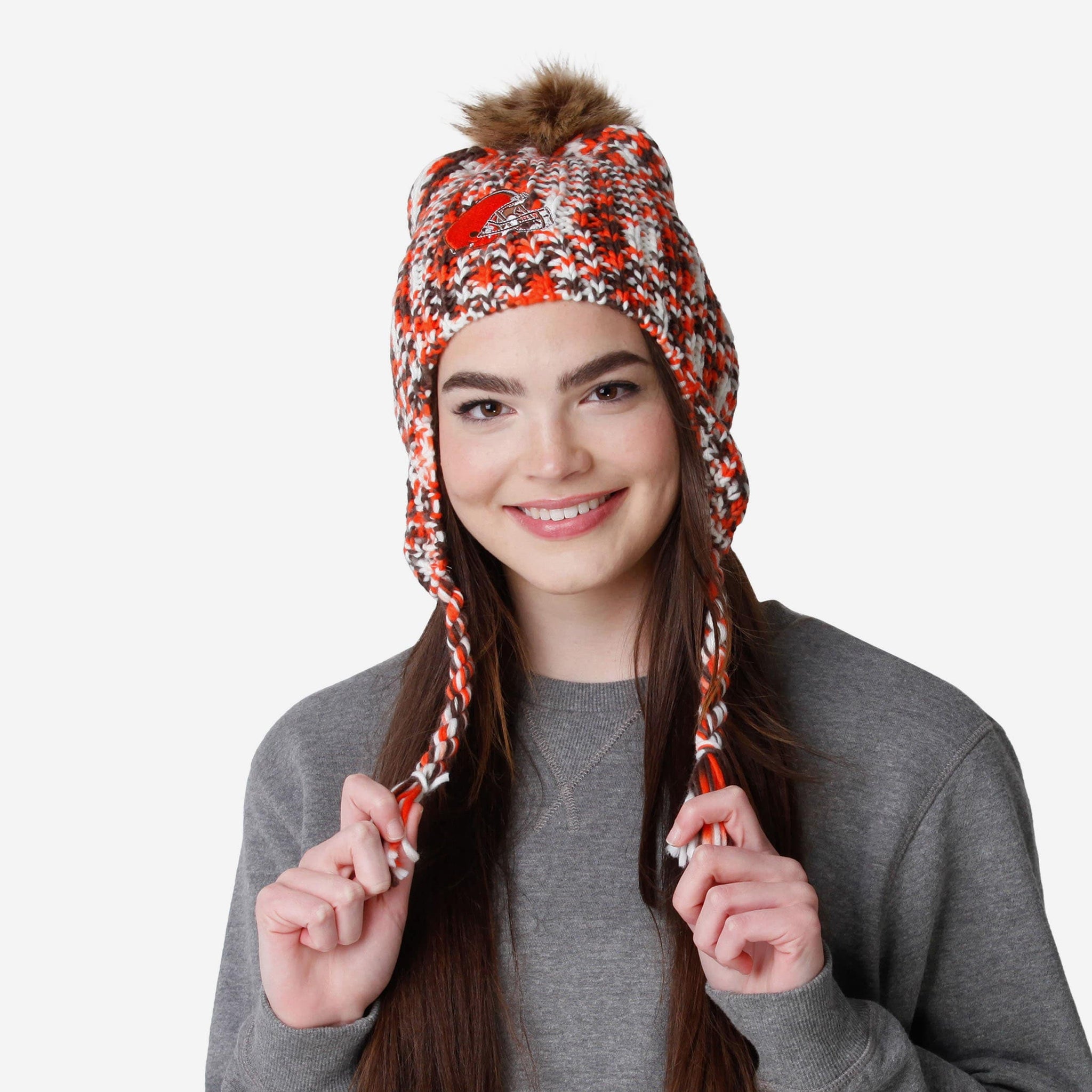 - Side ear flaps with team-colored pom ends for a little extra fan flair