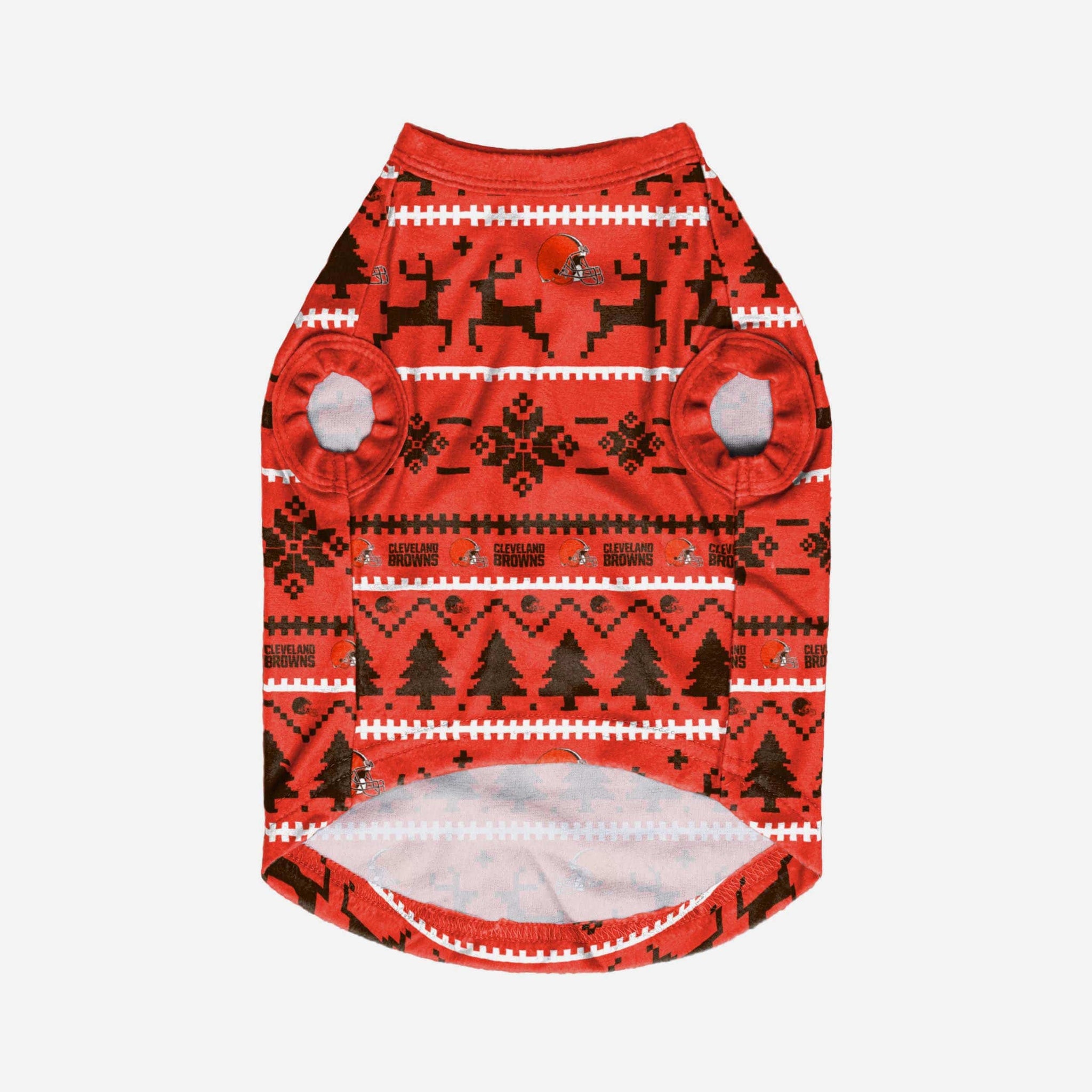 Show off your pet's holiday spirit with this dog sweater. Your good boy (or girl) will love this Cleveland Browns Dog Family Holiday Sweater so much, they'll be saying "woof bark awooo" (that's "thank you" in dog). Don't forget to match your canine's sweater with a set of matching holiday pajamas.