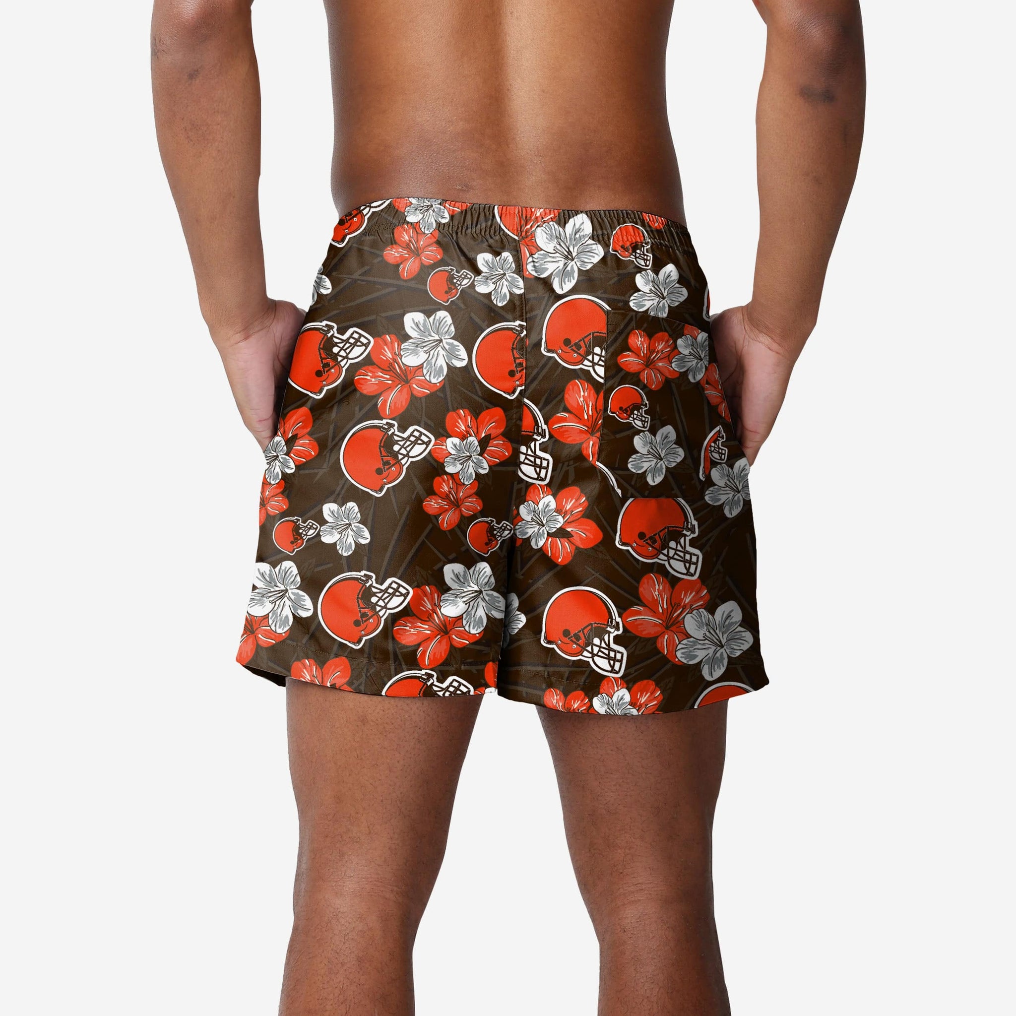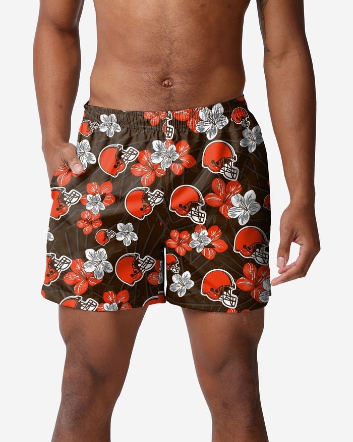 Rock your fandom and say aloha to the pool, ocean, lake, hot tub, or whatever body of water you're getting into while you wear these Cleveland Browns Hibiscus Swimming Trunks.