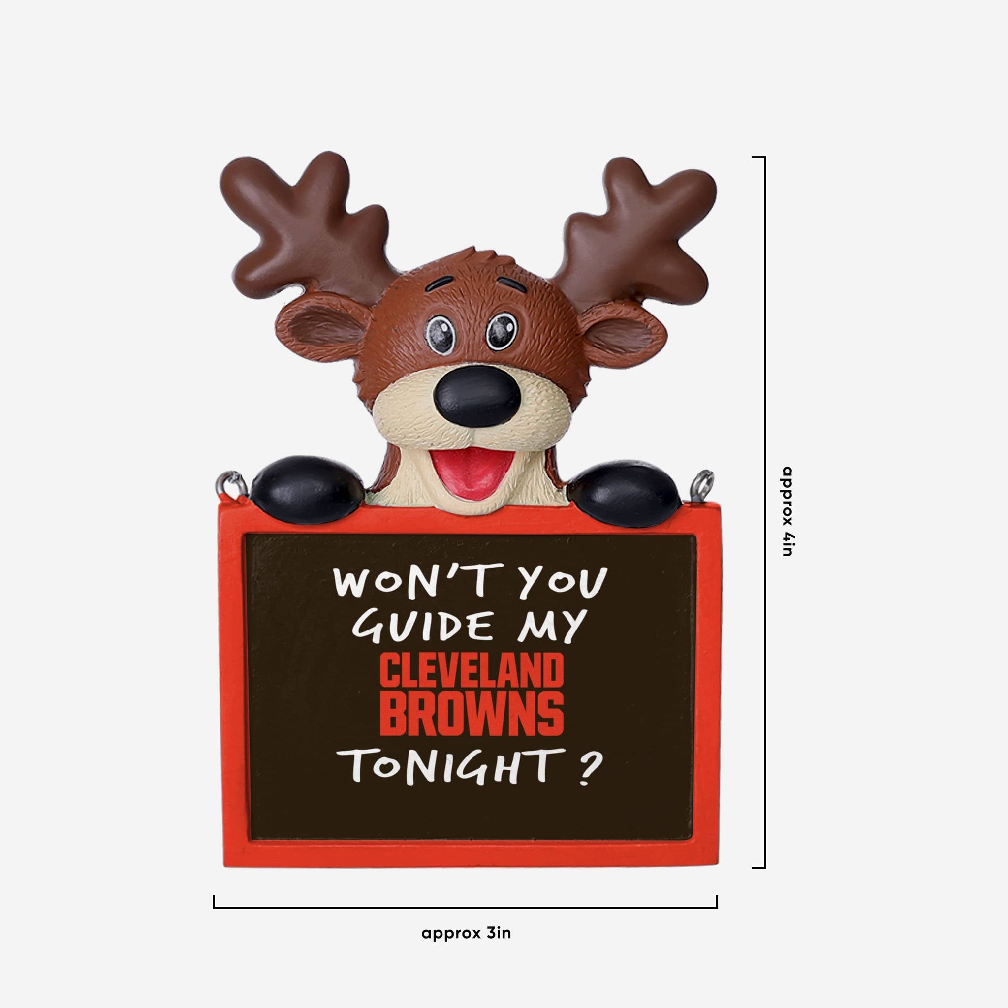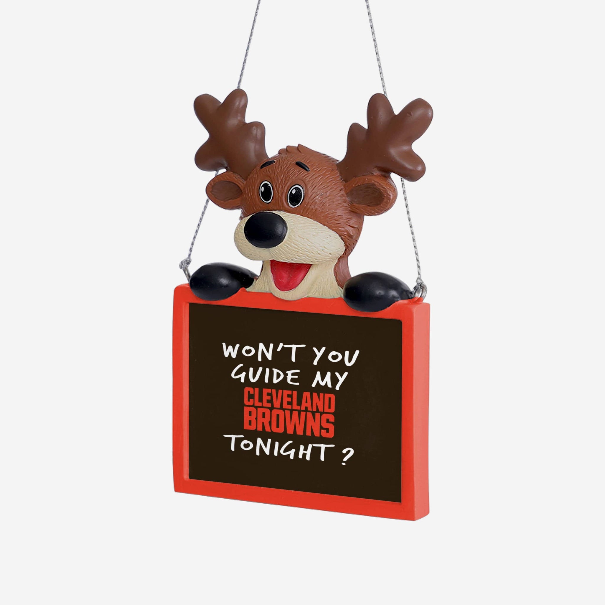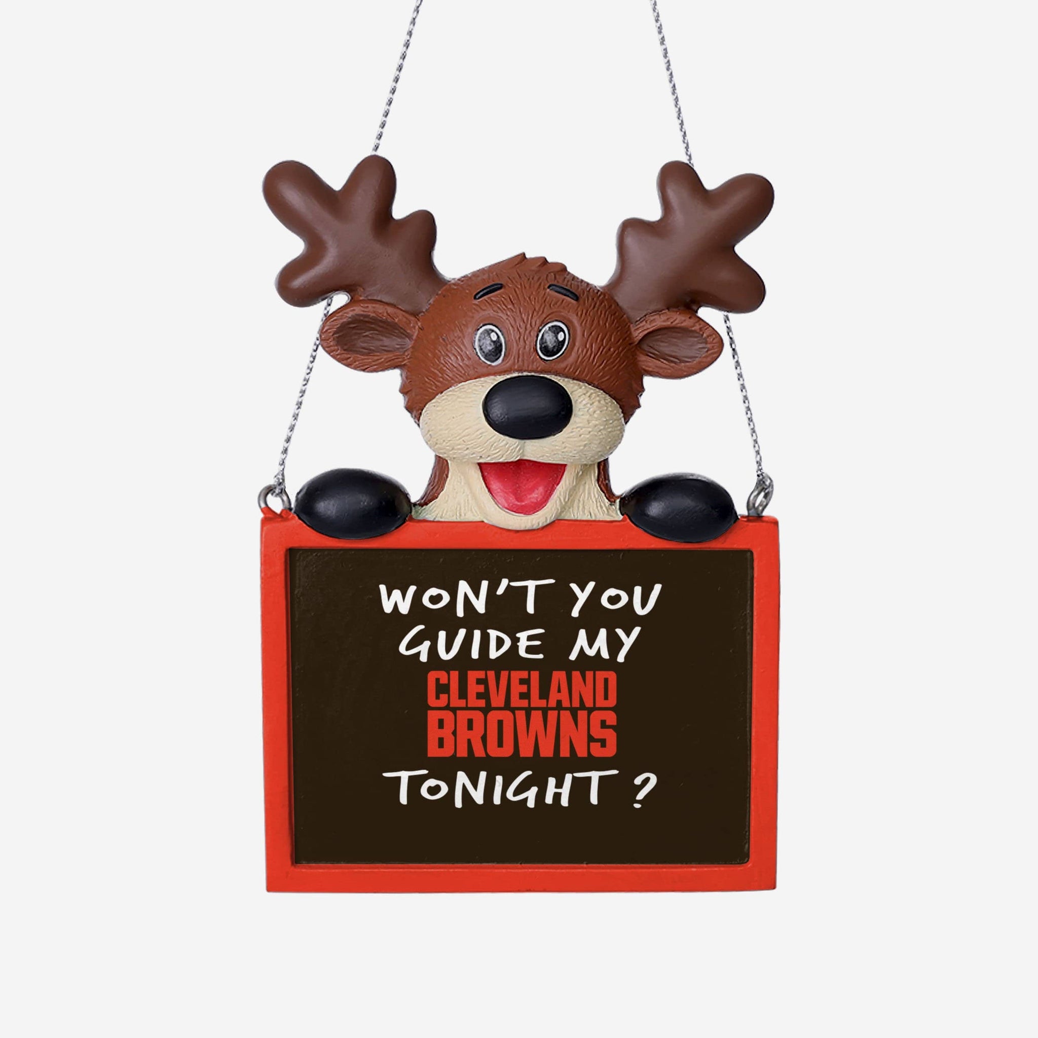 Tired: Dasher. Dancer. Prancer. Vixen. Wired: This Cleveland Browns Reindeer with Sign Ornament.