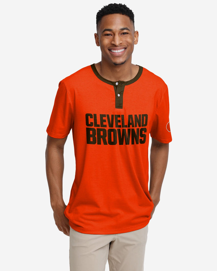 Cleveland Browns Solid Wordmark Short Sleeve Henley FOCO - FOCO.com