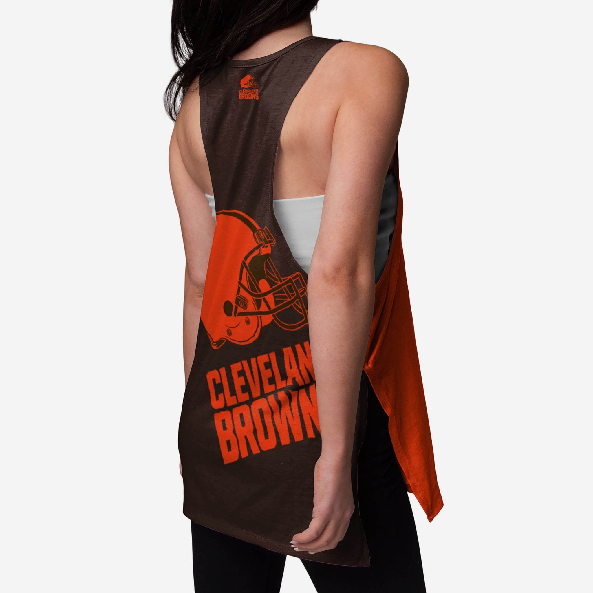Bold fans like you need to boldly show off your fandom. That's where this Cleveland Browns Side-Tie Sleeveless Top comes in. It has your team colors on display on the front and the back, because two ways to show off your team spirit are better than one.