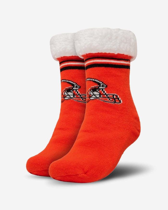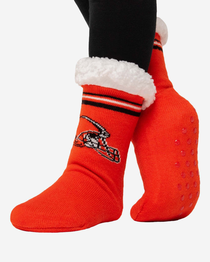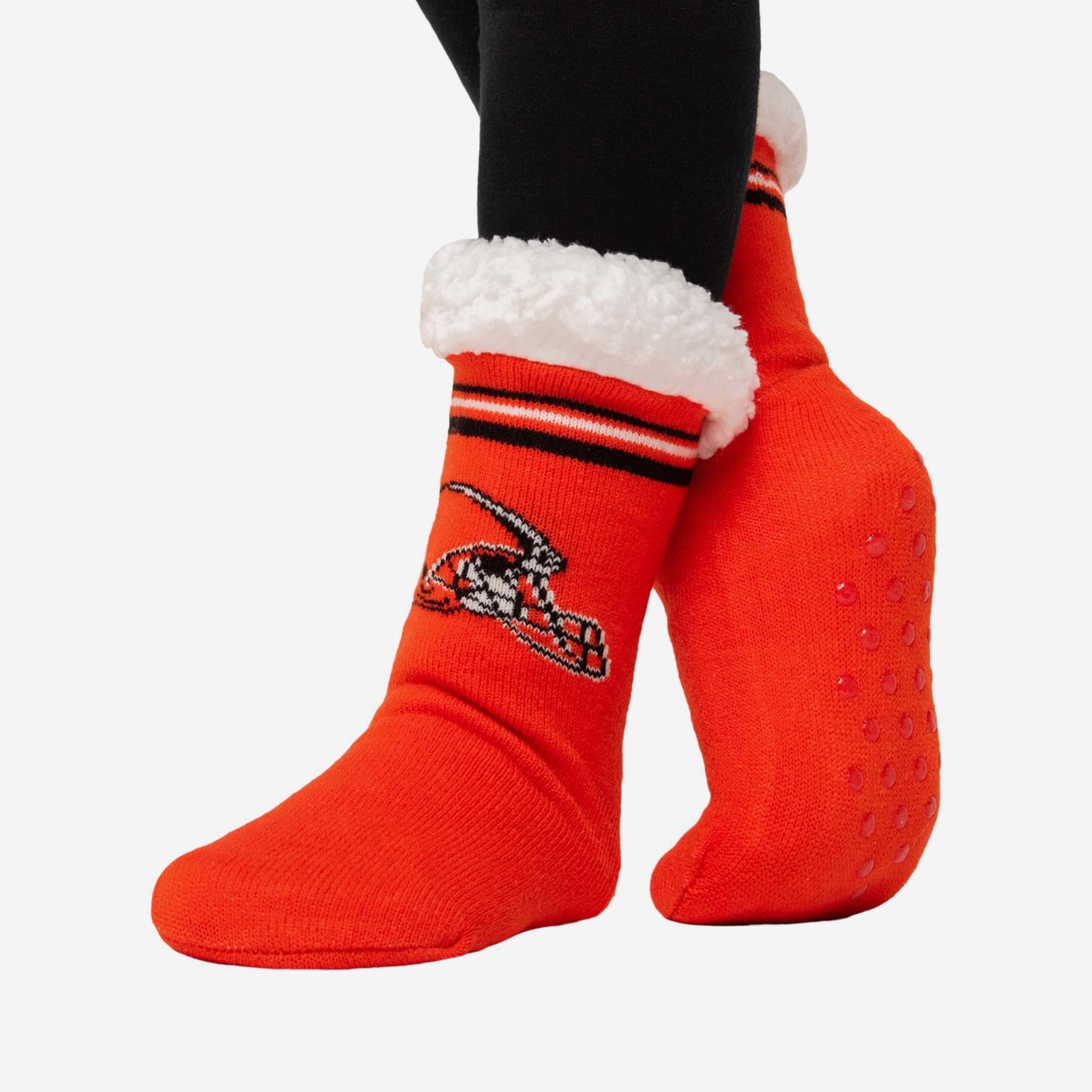 Name a more dynamic duo than the comfort and team spirit on display in these Cleveland Browns Stripe Logo Tall Footy Slipper Socks. We'll wait.