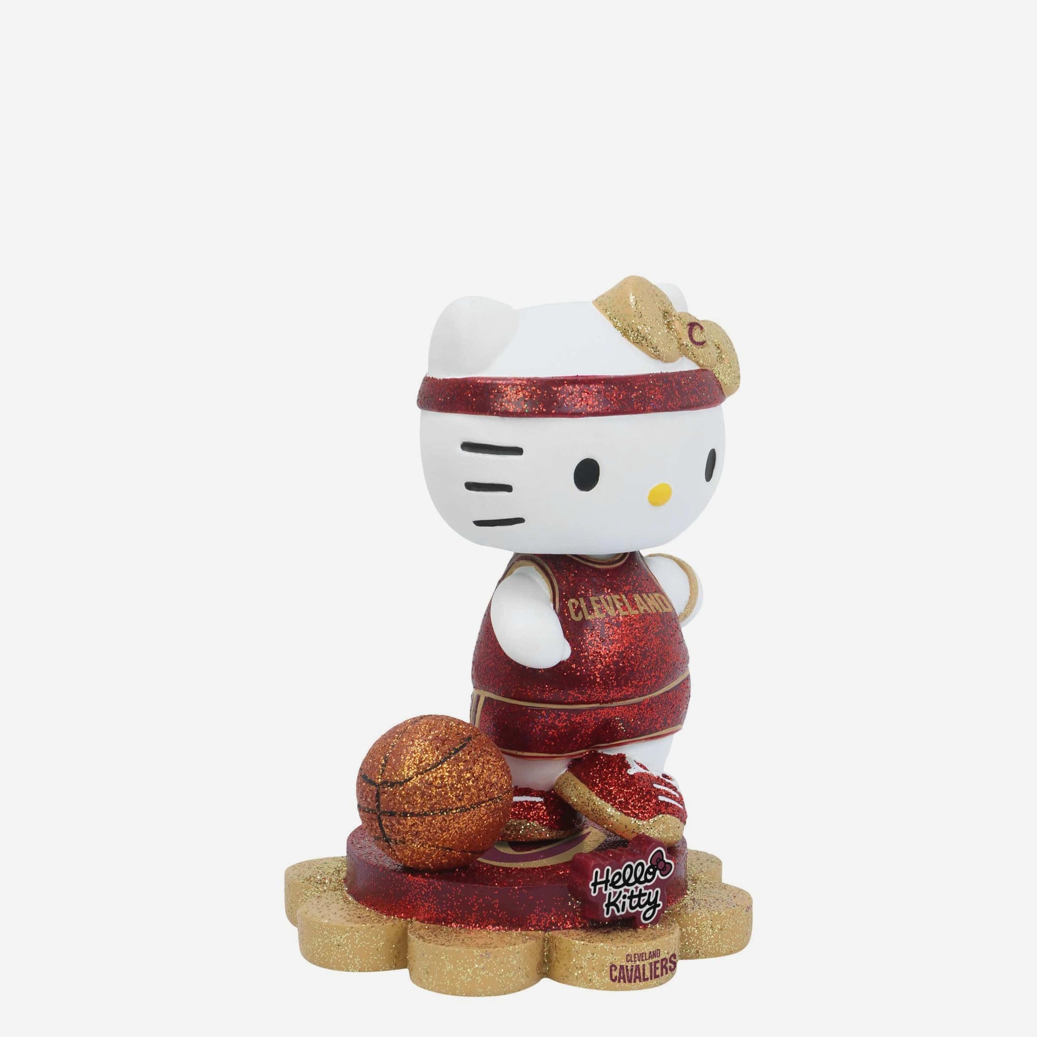 Cute, collectible, and courtside-ready! Hello Kitty® is officially hitting the hardwood and your collection in sparkle style with the Cleveland Cavaliers Hello Kitty® Glitter Mini Bobblehead.